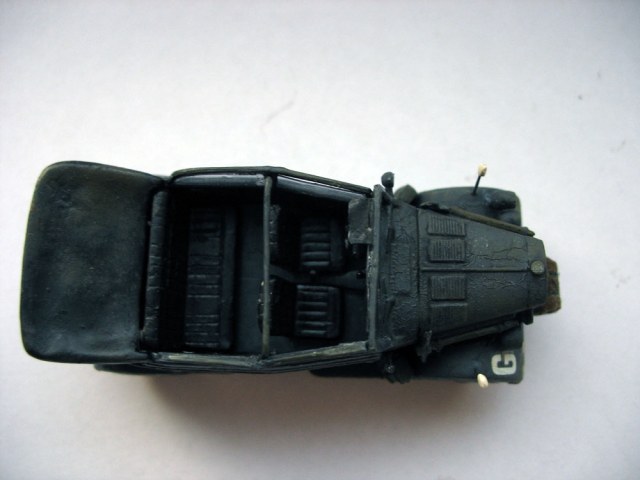Гарабриты, скатку, козырьки и место для штабного символа, стекла и зеркала заднего вида сделал самостоятельно из подручных материалов. Также добавил канистры.