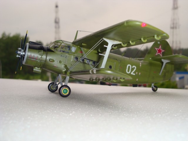 Добрый день. Предлагаю Вашему вниманию, так сказать, родоначальника семейства Антонов, легендарный многоцелевой самолёт биплан Ан-2, который носит прекрасное имя "Аннушка". По отношению к этому самолёту я никогда не применяю прозвище, которое досталось ему в наследство от не менее легендарного По-2, и одного деятеля, который мечтал всю страну засеять попкорном... Мне посчастливилось дружить в жизни с человеком, который первым в СССР перевёз на Ан-2 миллионного пассажира, а точнее, пассажирку. Это был удивительный человек. Бывший военный лётчик штурмовик, прошедший войну на Ил-2. В мирное послевоенное время пилотировал этот чудо-самолёт Ан-2 в А/П "Жуляны" - Буряк Николай. Благодаря этому человеку я, тогда ещё мальчишка-пятиклассник, делал первые шаги в моделизме, и познания в авиации. Что касается модели, то открыв коробку понимаеш, это далеко не оригинал. Первое что я сделал перед сборкой - это выбросил фонарь кабины и обтекатель двигателя, на их место изготовил новые детали. Заменил иллюминаторы и хвостовую стойку шасси. Исправлена геометрия хвостового оперения. В сборке модели использовалось фото-травление, точнее модель подгонялась под травление. Собрана модель клеем "Супер 505", красилась акрилом "Хо-Ма" и "Ревел". Что из этого получилось - смотрите сами, он перед вами.