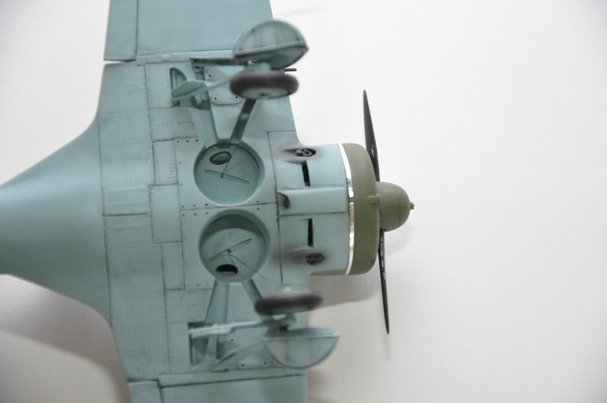 Понравилась модель,аккуратно собрано и окрашено.Только очень бросается в глаза ваш обдиринг на винте,неестественно выглядит.Метал должен проступать через основные цвета, а не быть нанесенным поверх них.