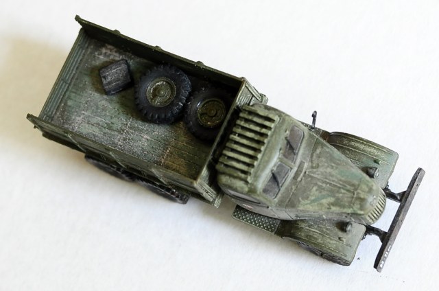 По окраске. Кузов нормально, белесая пыль на кабине - не очень похоже, а коричневые однотонные пятна на шинах - совершенно не похожи на глину.