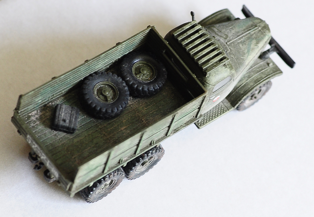 Из моих недостатков:не сделал карданный вал.Когда задувал лаком забыл прикрыть стекла и последнее так и не удалось убрать блеск с декалей.