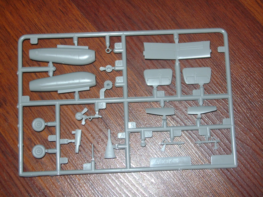 Доброго времени суток каропчане. Сие чудо обшлось мне в 320руб. По деталировке сказать особо нечего...бедная(всего лишь 23 детали). Качество деталей порадовало. В некоторых местах даже клей не нужен, к примеру соединение фюзеляжа и крыльев. Ну а теперь о фюзеляже... вообщем отливка качественная, но с малым кол-вом облоя и небольшой вмятиной на брюхе. 2 типа камуфляжа:трофейный(захваченный СССР) и немецкий. Хорошего просмотра...