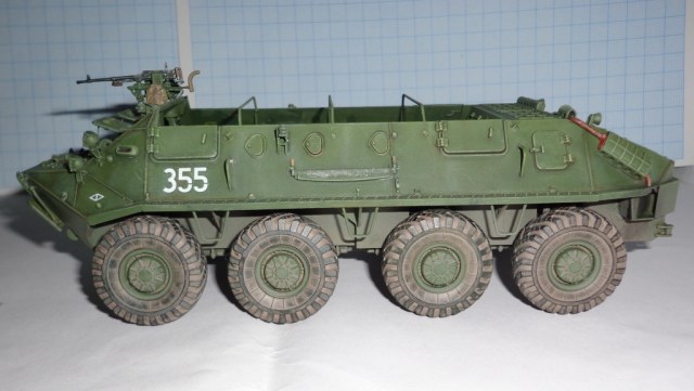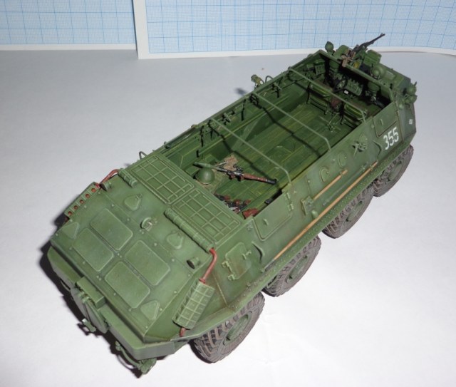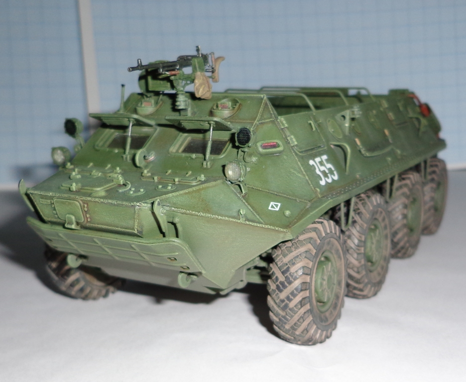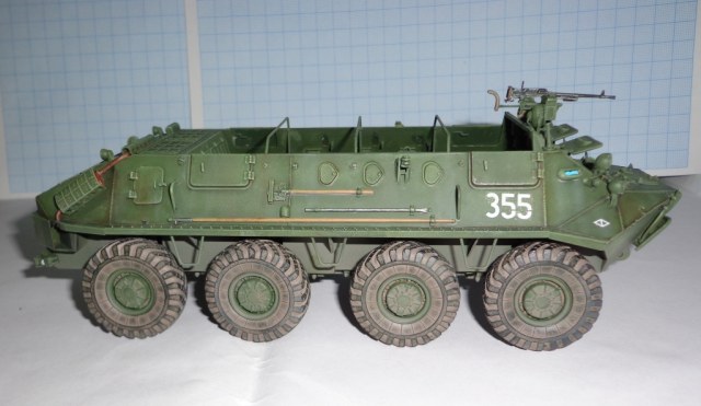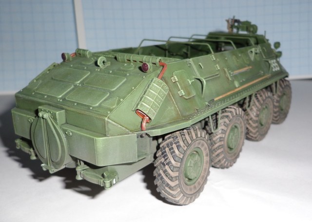 Рано поставил я на полку БТР, ждет его очередная порция краски, а если хватит духа то и смотровые приборы переделаю.