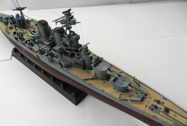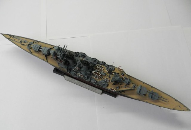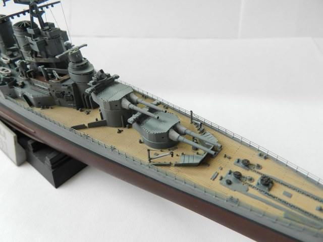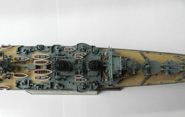 Представленная модель строилась сразу после принца, около года назад. Собиралась без всяких заморочек ,что называется ,тупо из коробки. Но после двух представленных ранее работ решил переделать данный кит. Разобрал его на сколько это было возможно. Началось все с добавления лееров. На готовой крашеной модели делать это очень проблематично, особенно красить, так что не обошлось без косяков и пришлось передувать почти все плоскости. К сожалению поставить перила на трапы не получилось, побоялся вообще все испортить. Переделал башни средней артиллерии, пришлось снимать бронезащиту. Стволы поставил металлические от АБЕР . Так же перепаял мачту и перетянул весь такелаж т.к. прежний был из тянутого летника. Ну вот в принципе и все переделки, без видимых косяков конечно не обошлось, так что не судите строго.