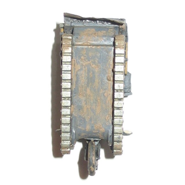 Далее - выпачканы даже надгусеничные полки, а диск переднего колеса и борт за передним колесом очень чистые. И еще разве у него на гусенице были не резиновые накладки снаружи, а металлические(как у Вас)?