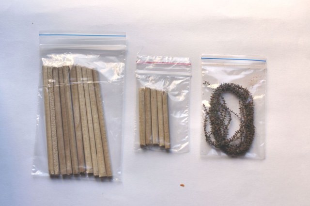 Имитация колючей проволоки, пять отрезков, по 500 мм. каждый, из какого-то синтетическополиэтиленового материала. Состав выяснить не удалось)))