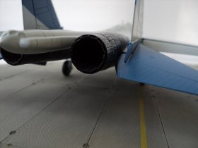 По сборке больших трудностей не встретил, хоте без надфиля и шпатлевки не обошлось.При сборке использовал наборы от NEOMEGA: кабина пилота и сопла, а также колеса от EQIPAGE и деки от БЕГЕМОТа.