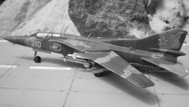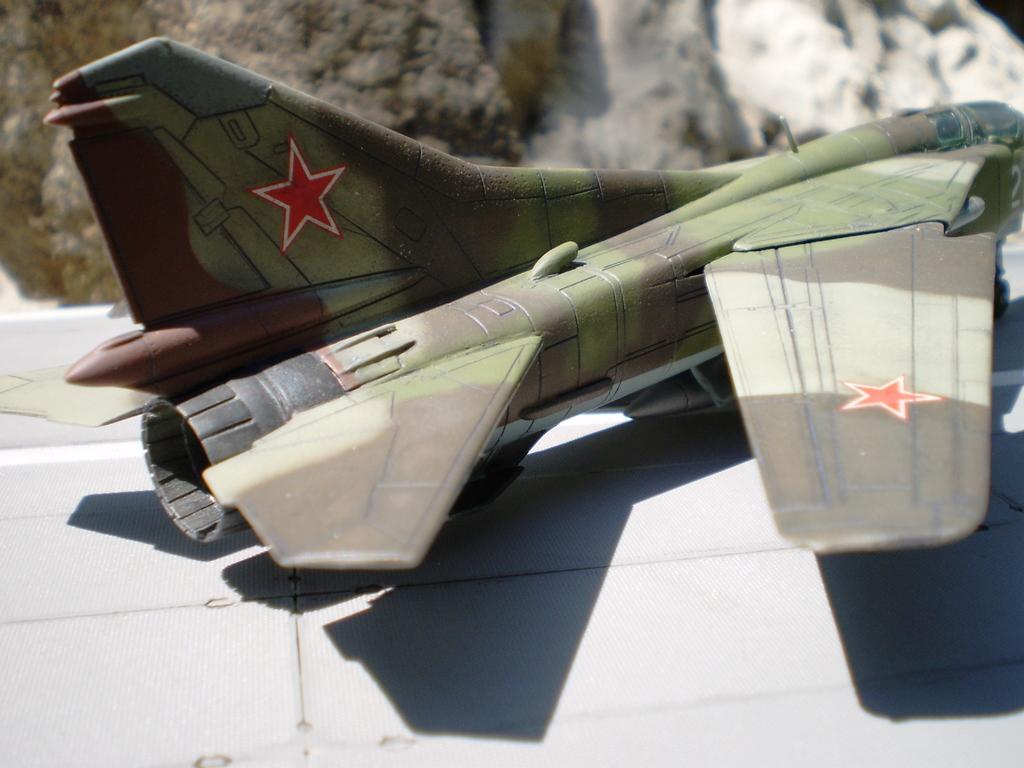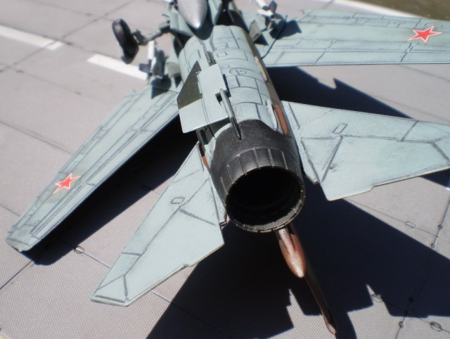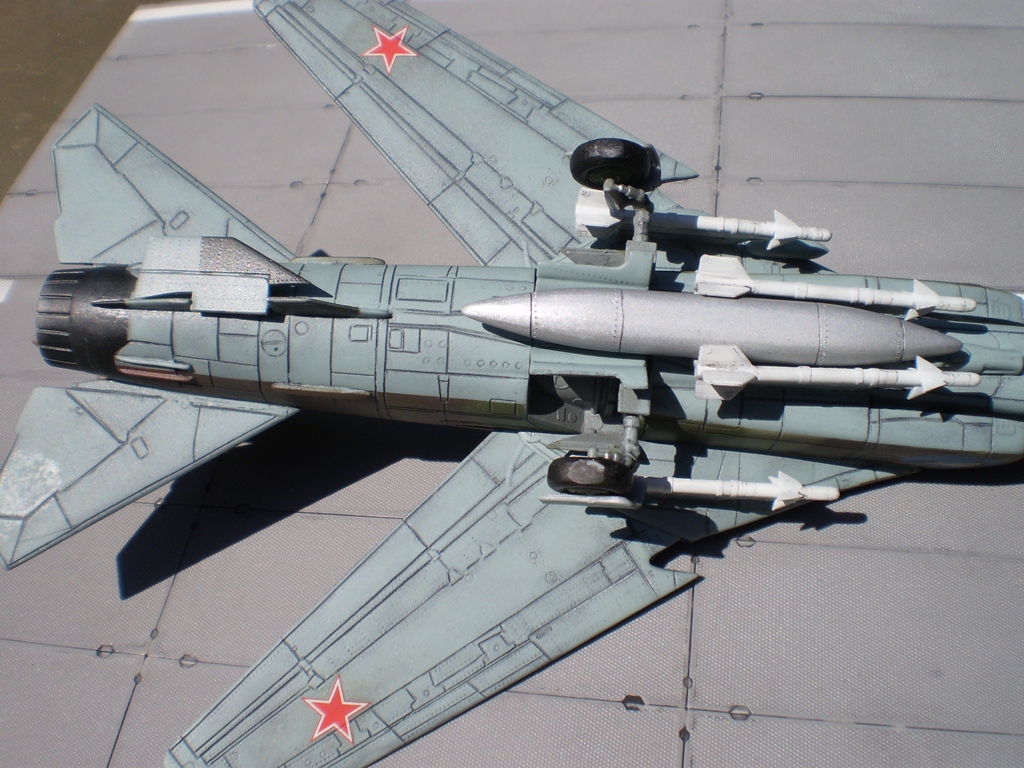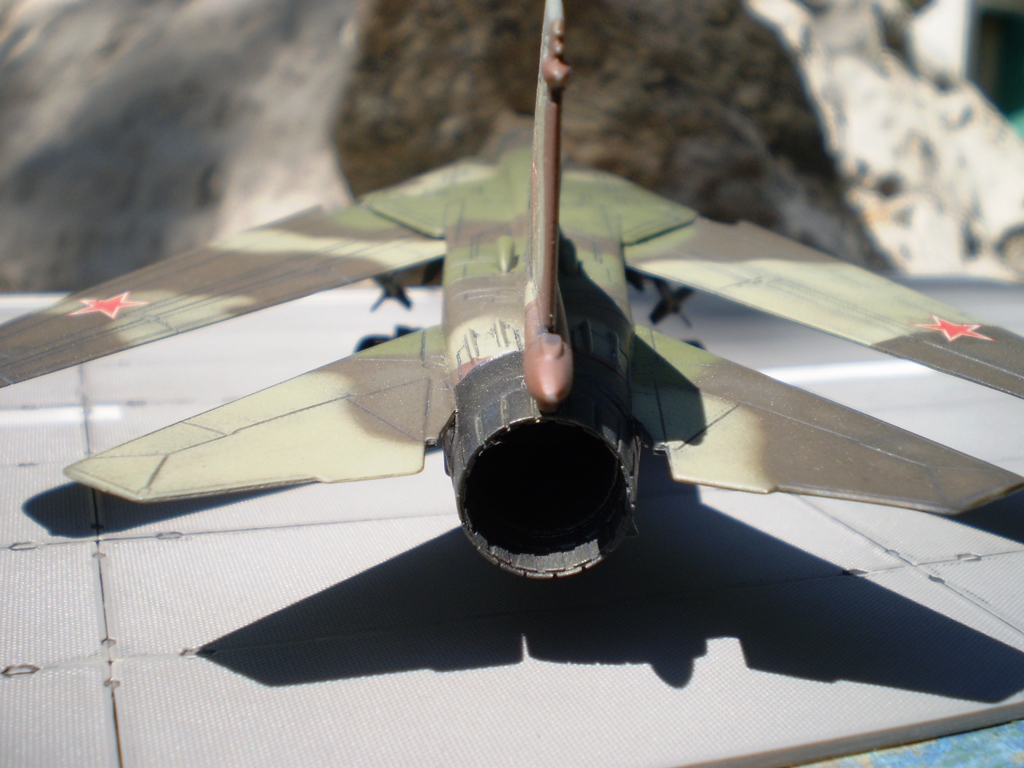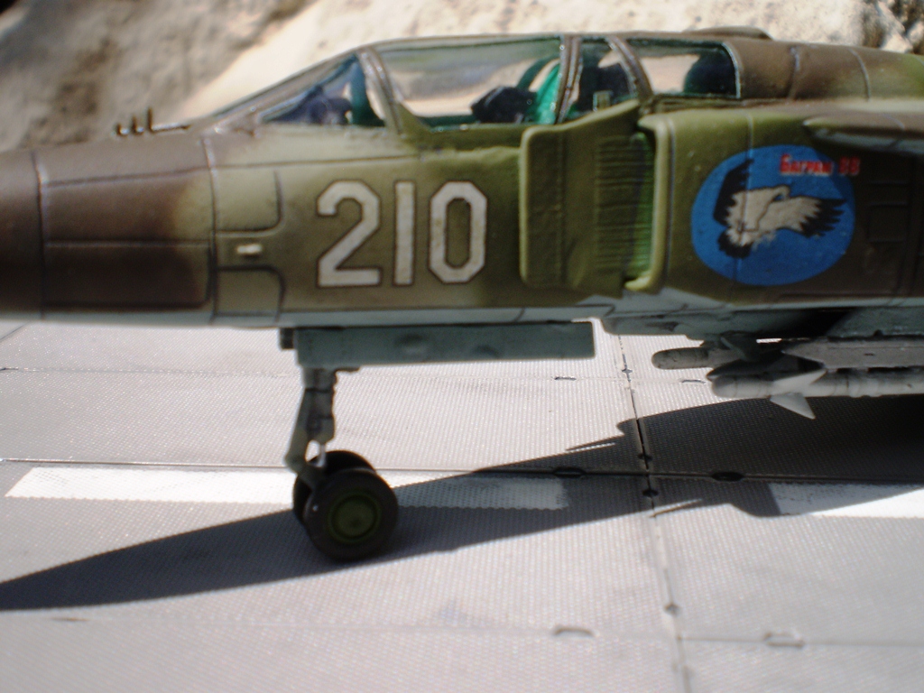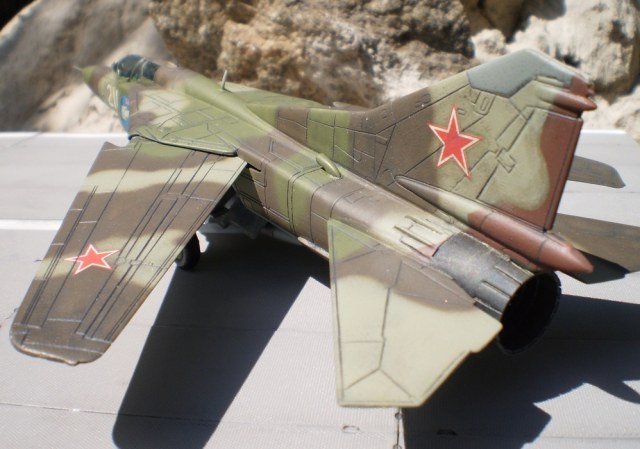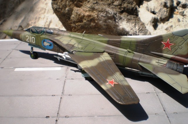 Если Вы позиционируете модель в Афганском варианте, то мой Вам совет - снимите ракеты Р-13 (они ни там, ни где-либо ещё с МиГ-23 не применялись) и подвесьте на НЧК под мышки пару блоков УБ-16 (УБ-32), а на БД под ВЗ пару ОФАБ-250...как-то так...это будет ближе к Афгану...ИМХО...