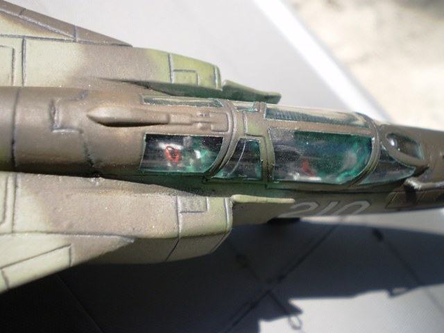 Модель красилась при помощи аэрографа и компрессора. В цвета как всегда не попал, маски не накладывал. Краски готовые – акриловая «Тамия» и «Хобби колор». Грунтовка – аэрозольная «серебрянка» «Босни». После покраски – глянцевый бесцветный лак того же производителя. Выделил крой при помощи гуаши на «Фейри». Финиш – спрей «Тамия» TS – 80 (матовый). Доработок не делал, единственно – основной ПВД как всегда из иглы от шприца и проволочные рукоятки на катапультных креслах. Ну вот вроде бы и всё… Что получилось – судить вам, уважаемые коллеги! Готов выслушать критику и замечания!