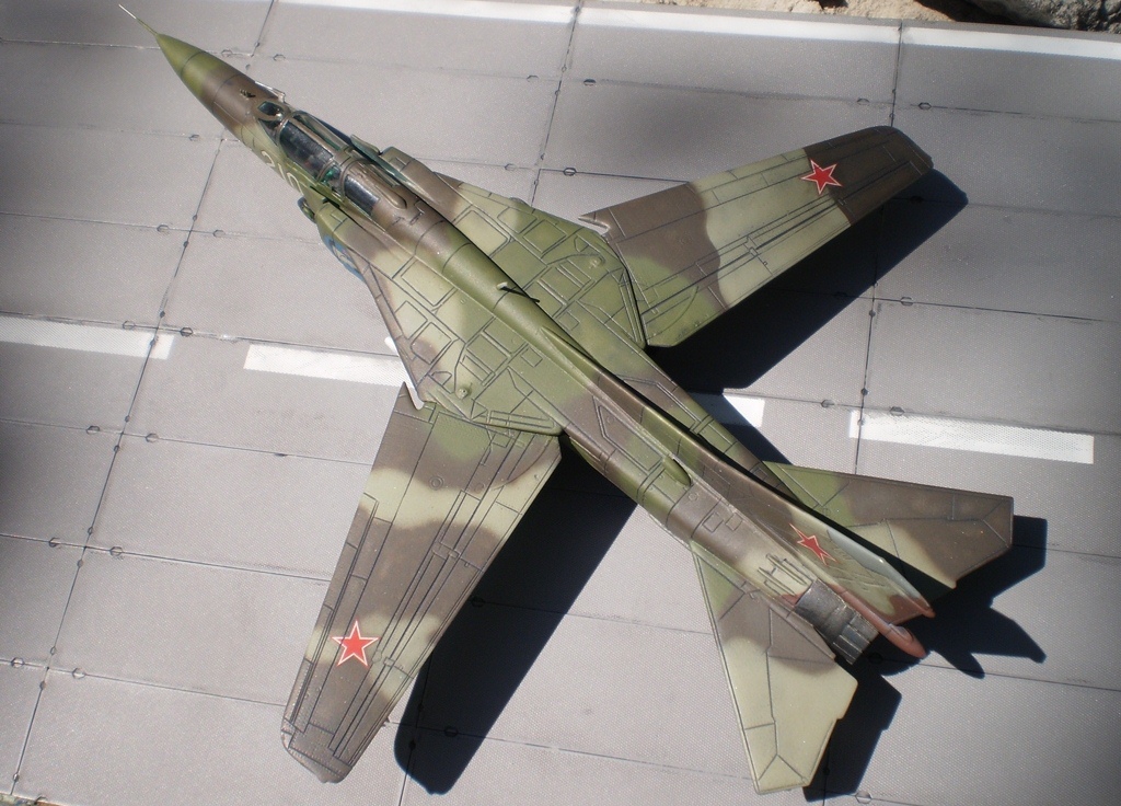 Комментарий к конкретно этой модели-ПРЕКРАСНО!! На все 100! А вот набор сильно огорчил.. а ведь я служил на МиГ-23 и очень ждал СПАРОЧКУ... Дождался.. Первой впечатление-СУПЕР! Но потом при детальном рассмотрении... МРАКИ! Во первых напрочь отсутствуют фары, под воздухозаборниками.. а ведь даже на примитивной модели АИРФИКС они есть.. Второе-отсутствие гребней в каналах ВЗ-их по 2 с каждой стороны,практически вровень с входной кромкой. Третье-фонарь уродливый с каким то уступом по посадочной кромке. Хвоствая часть - если собрать-то сопло никак не войдет по диамету. Интерцепторы выделены неправильно Ну и клепка.. вещь красивая... но ее насовали везде где надо а больше-где не надо в частности на цельносварных панелях где ее отродясь не было. Косяки и на стабилизаторах и на многих других узлах много.