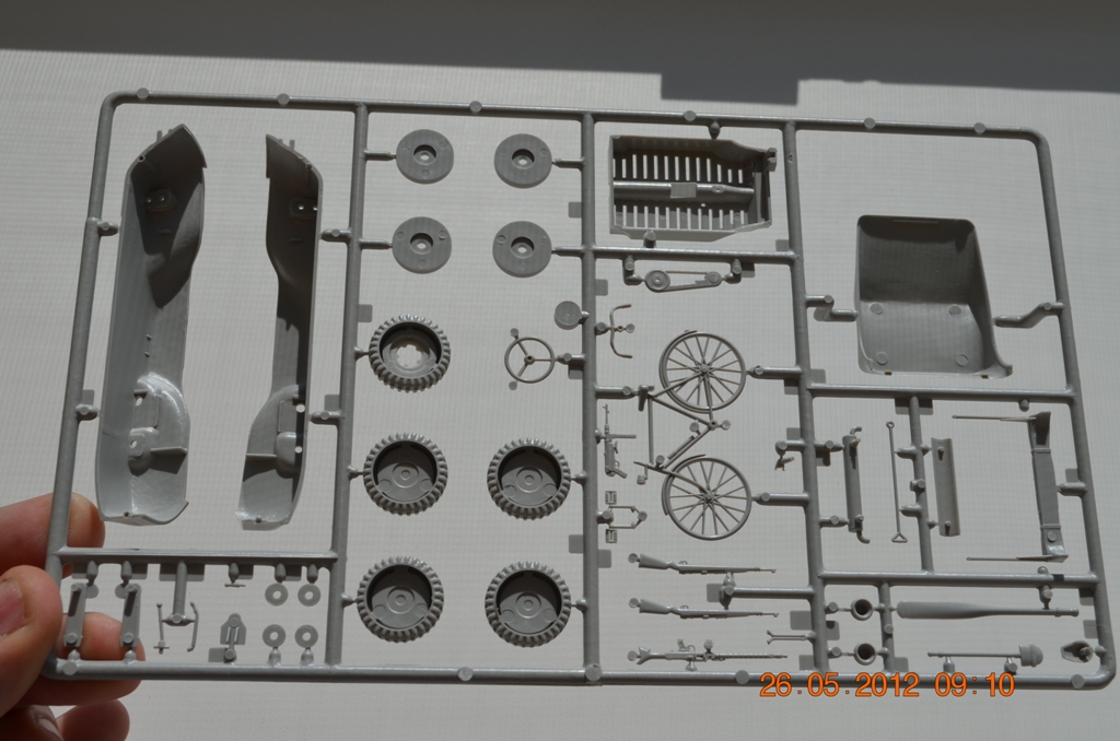 Модель можно собрать в двух вариантах: с поднятым тентом и собственно без- в виде скатки. В отличии от тамиевской версии, здесь нет ни двигателя, ни открытого капота. Все просто, дешево, и соответственно, быстро собираемо. При желании может получиться неплохой аппарат. Приятной сборки!