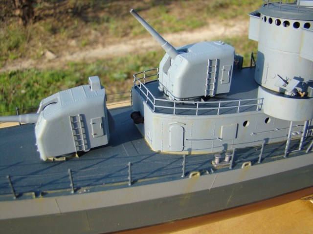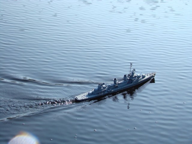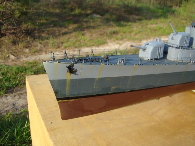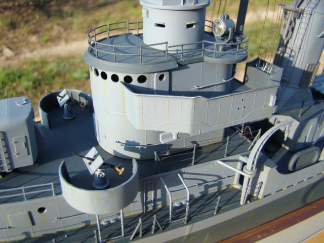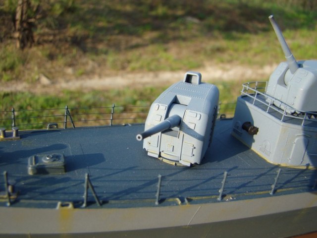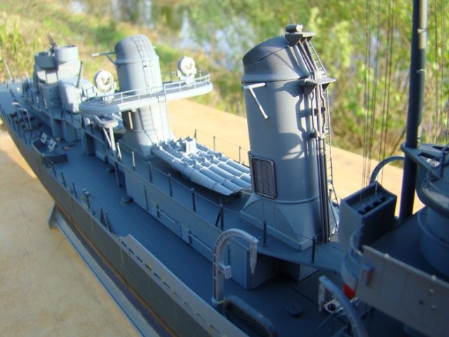 Прошу извинить меня за отсутствие описания.Исправляюсь: модель построена два года назад из набора фирмы REVELL масштаб 1/144.Конкретной исторической привязки нет поэтому получилось что то на тему "эсминец типа Флетчер ранний"