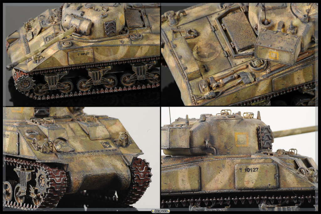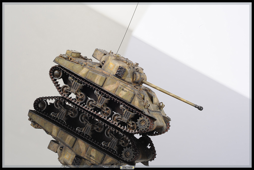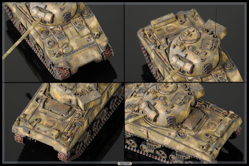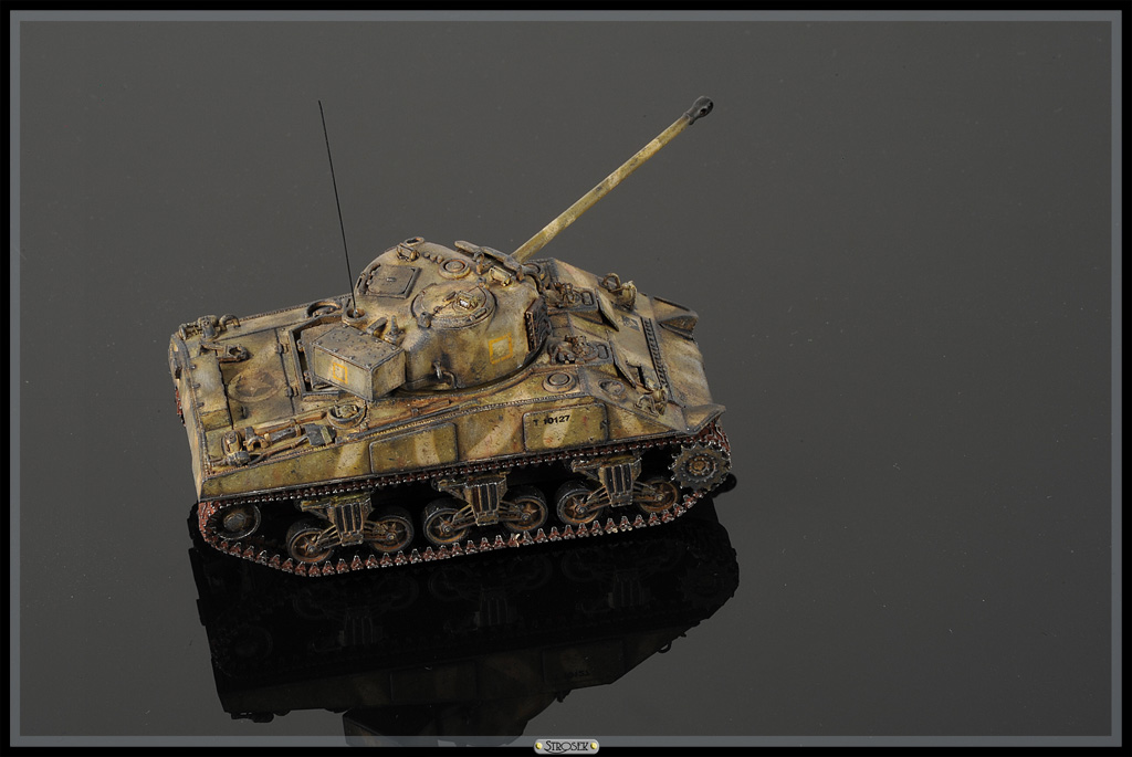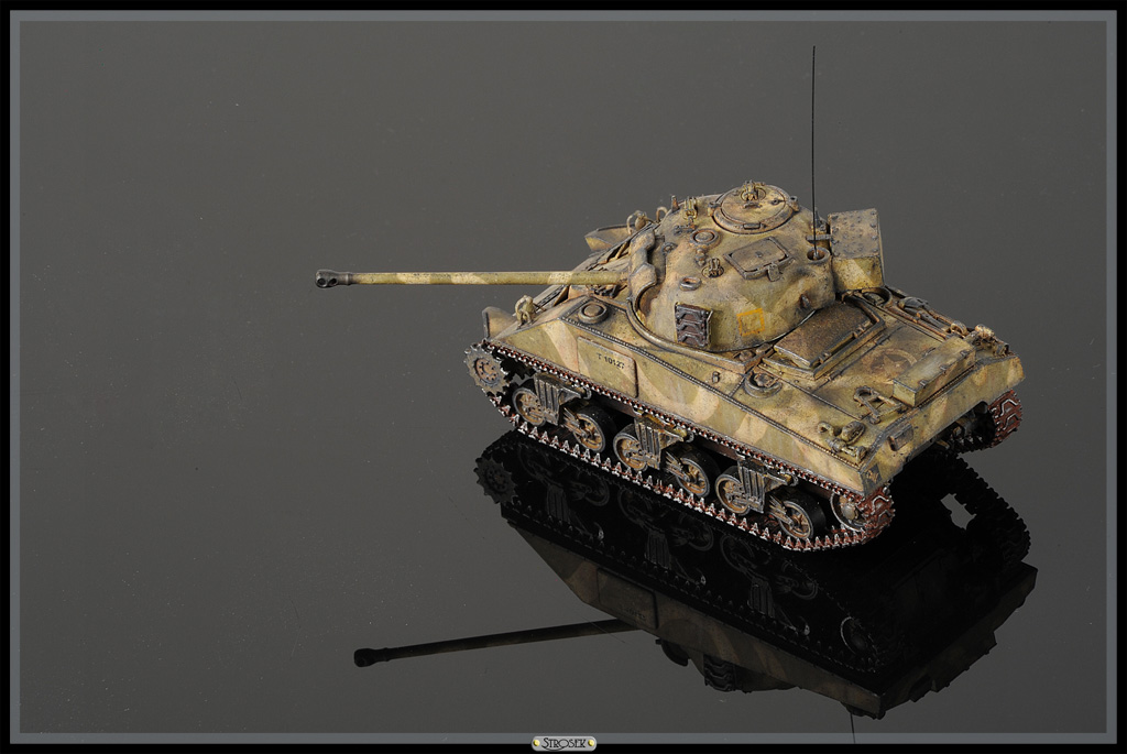 Обзор этой модели от Dragon в масштабе 1/72 выкладывал вот тут. Как и в других Шерманах осталась уйма деталей, можно будет где-то использовать. Танк довольно симпатичный, но что-то собирался без особого желания, поэтому полная изкоробка, сделал только пару поручней, да крепление ленивцев переделал. Гусеницы укорочены на два трака, из-за этого левая немного утопилась в шестерню. Окраска как обычно, единственное попробовал камуфляж, который планирую применять на Хэллкете в 35ом. Тут он крупновато вышел, там должно быть в самый раз. Уже потом, удосужившись прочитать об этой схеме раскраски, узнал, что применялась она на Тихом океане, а Светляков там наверное и не было. Ну да ладно, декали тоже не родные, так что полная фантазия.