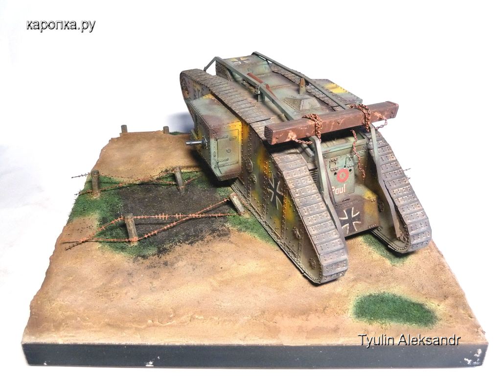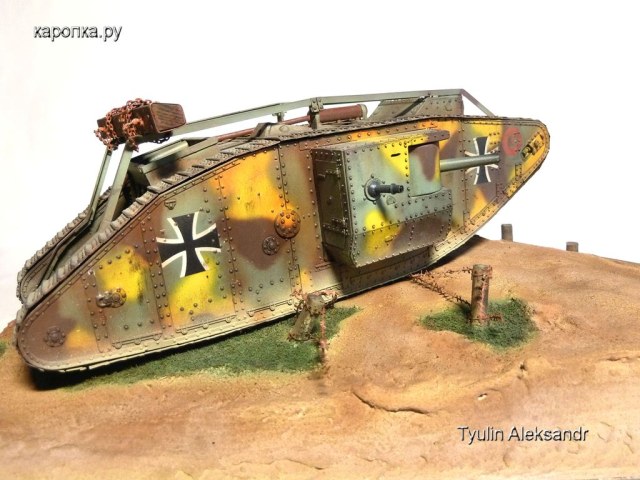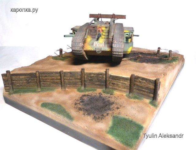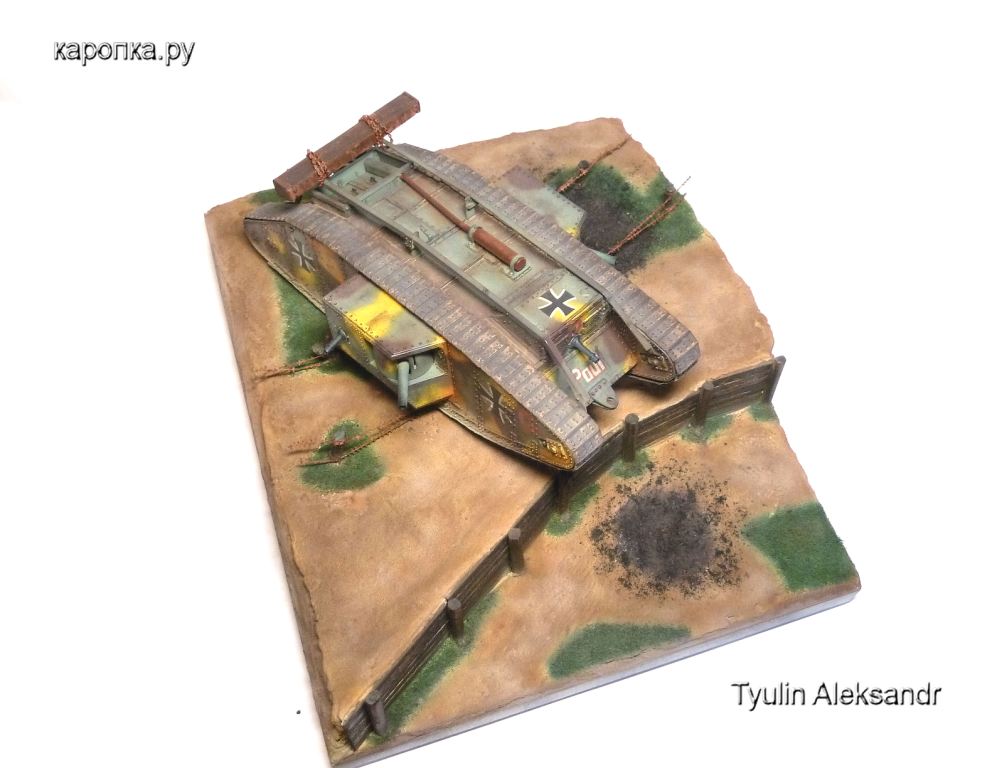 Очень приятный монстрик получился! Мне понравился, хотя в ПМВ не силен, но выглядит внушительно. А вот диорамка, какая то пустая получилась...видимо все свалили )) Как-то не смотрится.