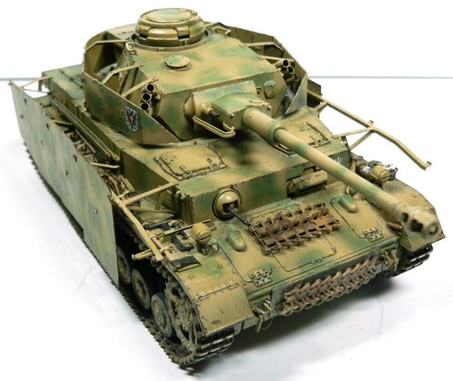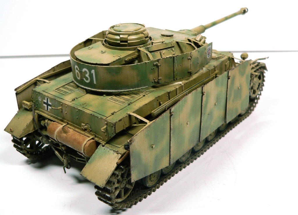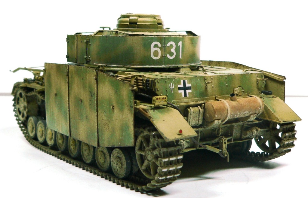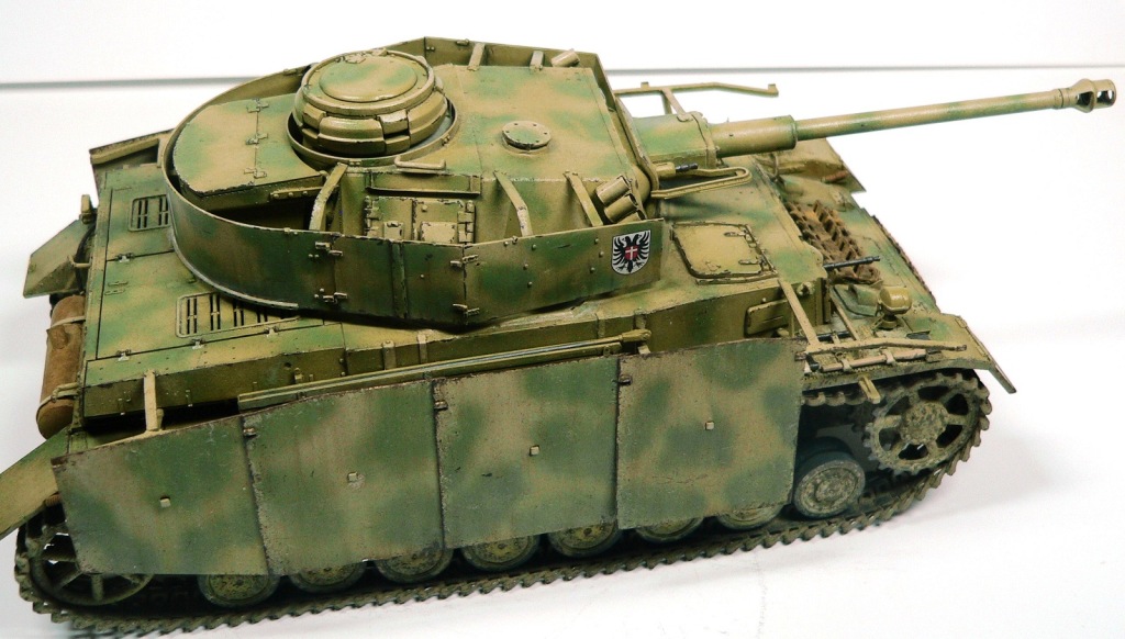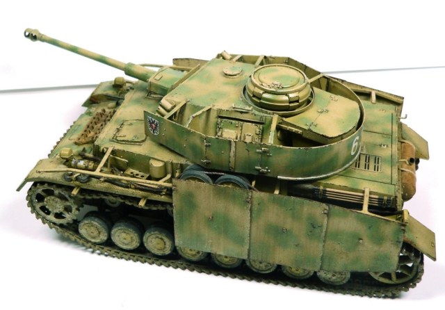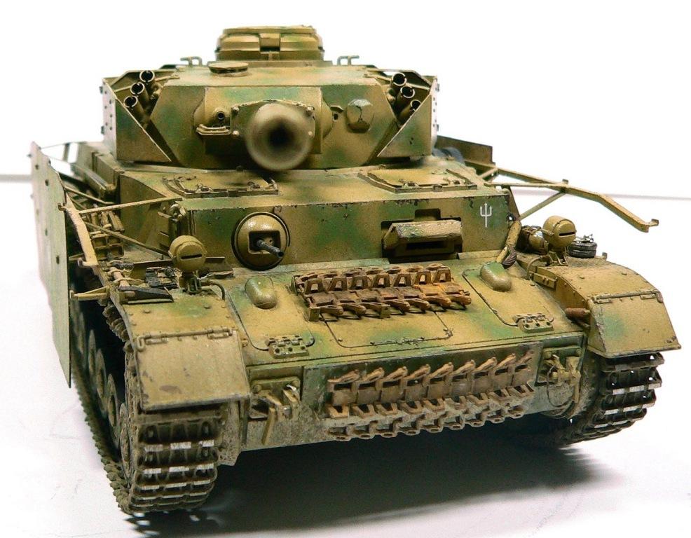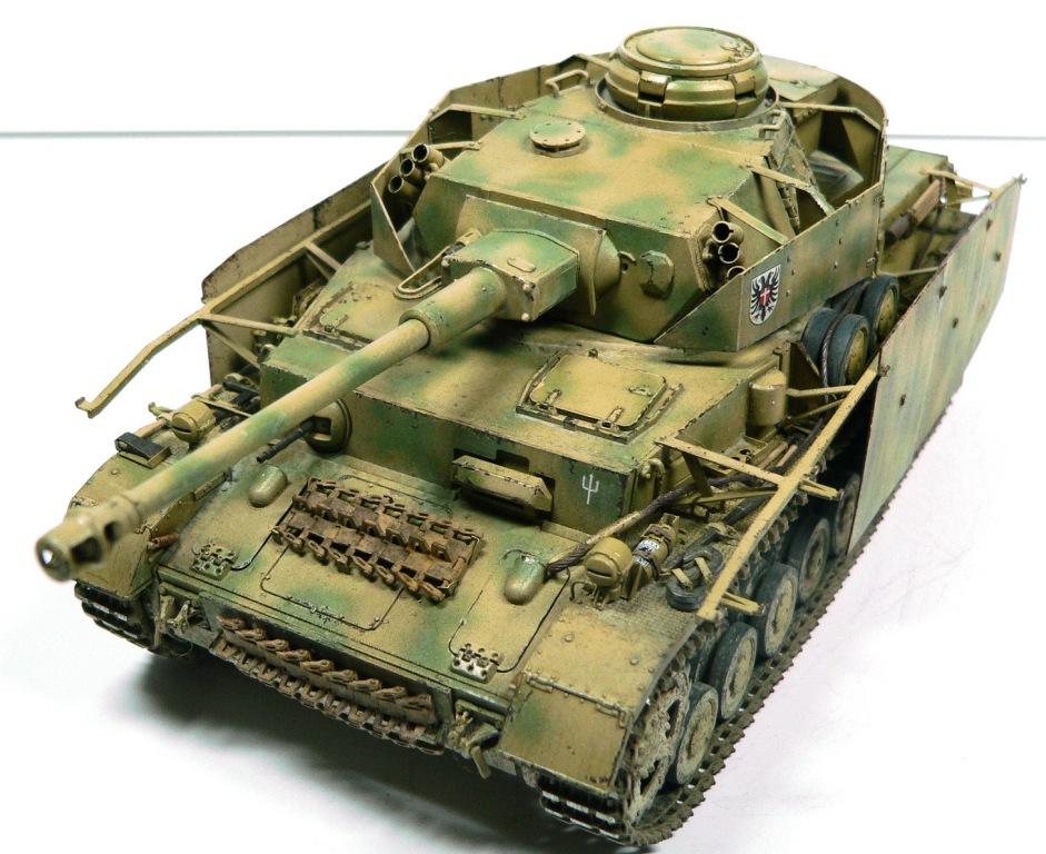 Модель Pz.Kpfw. IV Ausf. G от фирмы Драгон № 6594, как утверждают китайцы апрель - май 43-го. Красил аэрографом, акриловыми красками фирмы Тамия. Из дополнений использовал фототравление Вояджер № 35409, точеные стволы пулеметов и наборные траки от Фриула (делал впервые, понравилось).