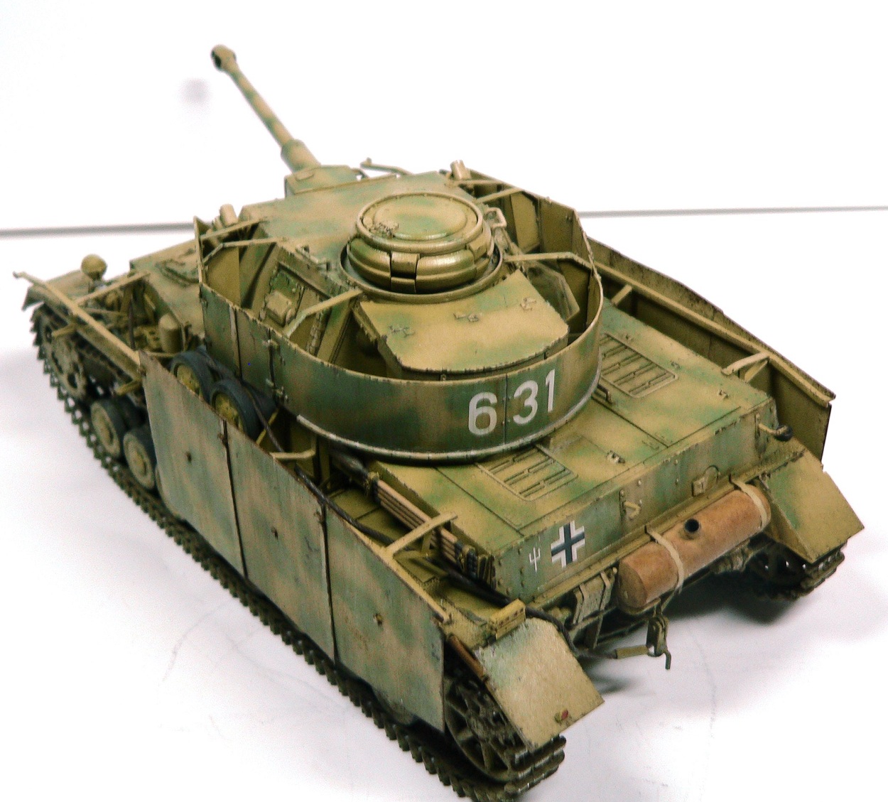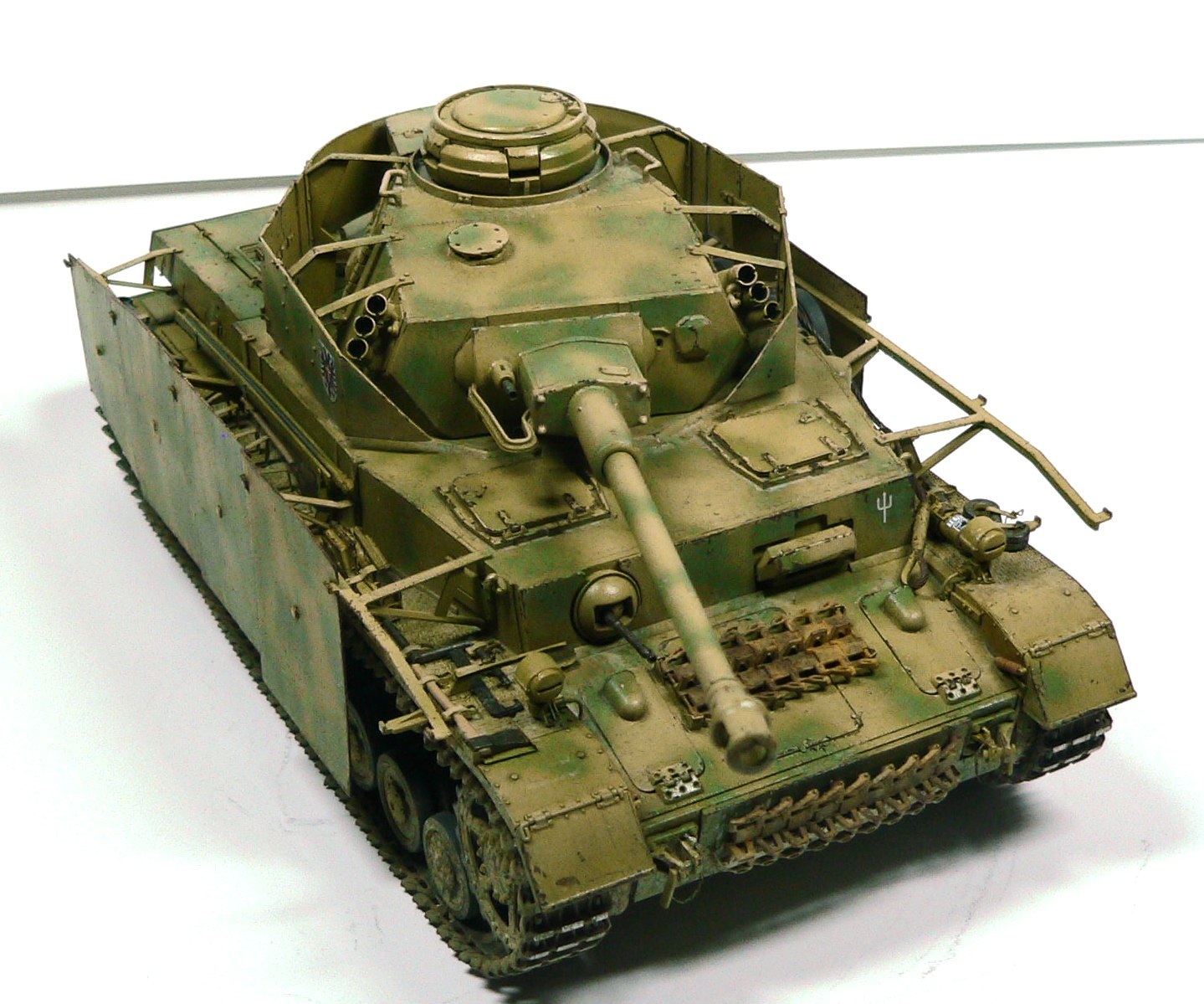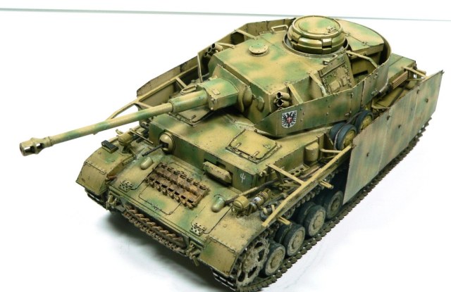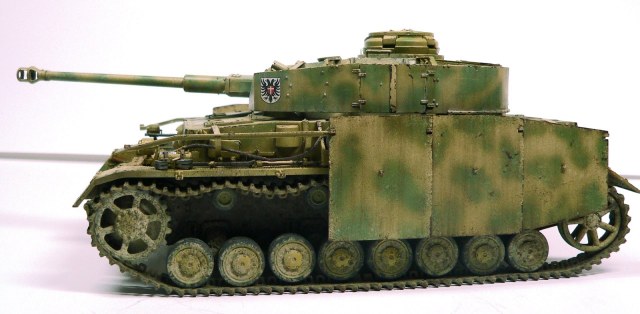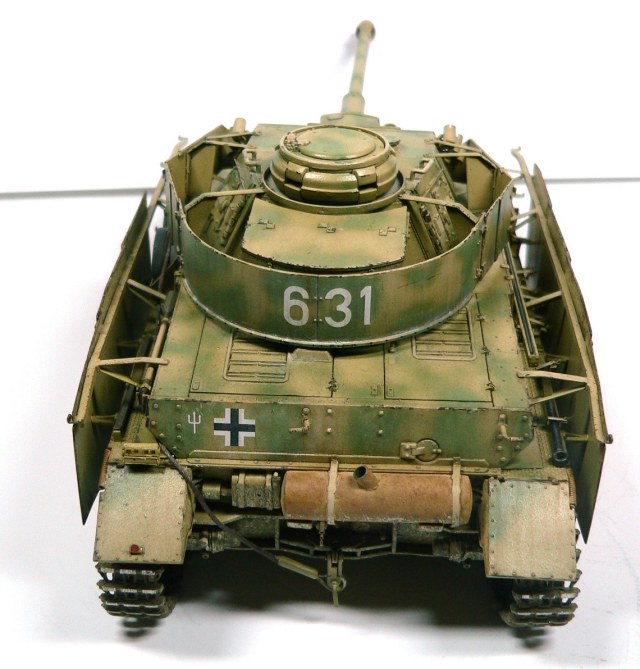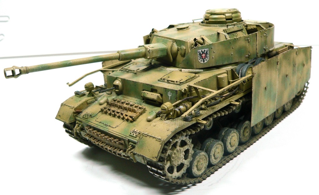 Модель Pz.Kpfw. IV Ausf. G от фирмы Драгон № 6594, как утверждают китайцы апрель - май 43-го. Красил аэрографом, акриловыми красками фирмы Тамия. Из дополнений использовал фототравление Вояджер № 35409, точеные стволы пулеметов и наборные траки от Фриула (делал впервые, понравилось).