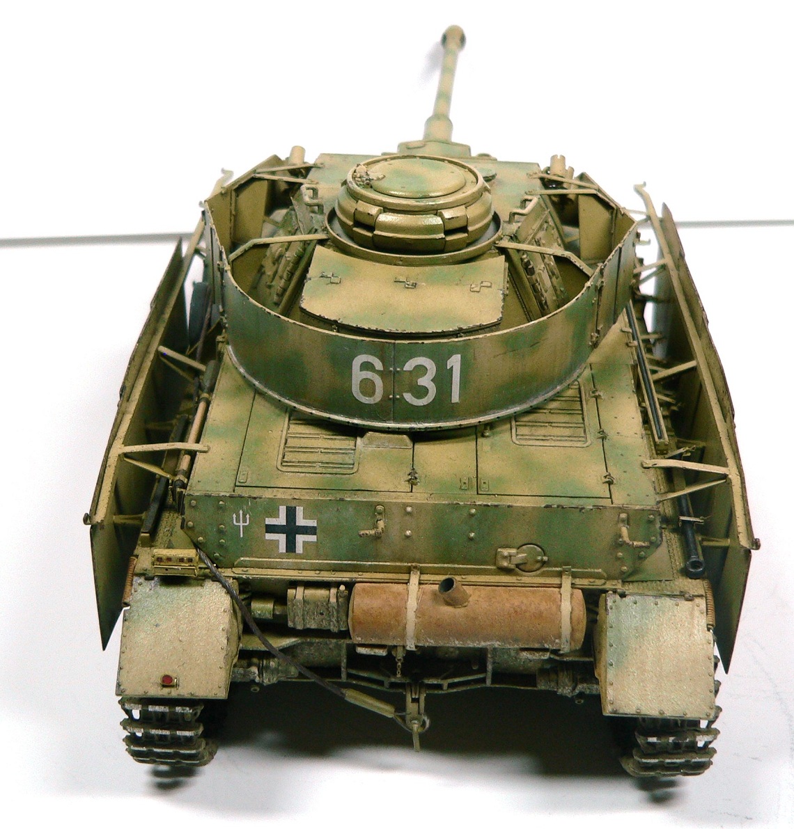 Классный танк и набор хороший! Сам такой собрал недавно и камуфляж кстати почти такой же! Единственное что смутило, так это толстоватые пружины на подкрылках, видно, что самодел. Я такие делал из гитарной струны, вынимаешь сердечник и в руках остается пружинка из оплетки.