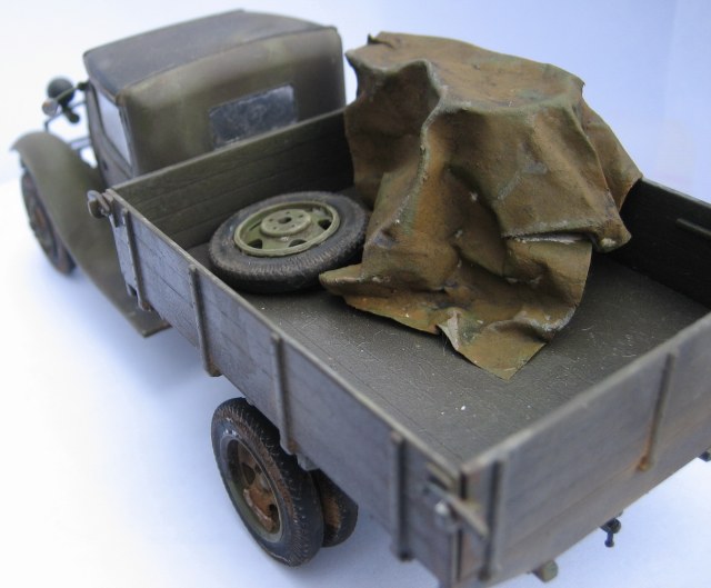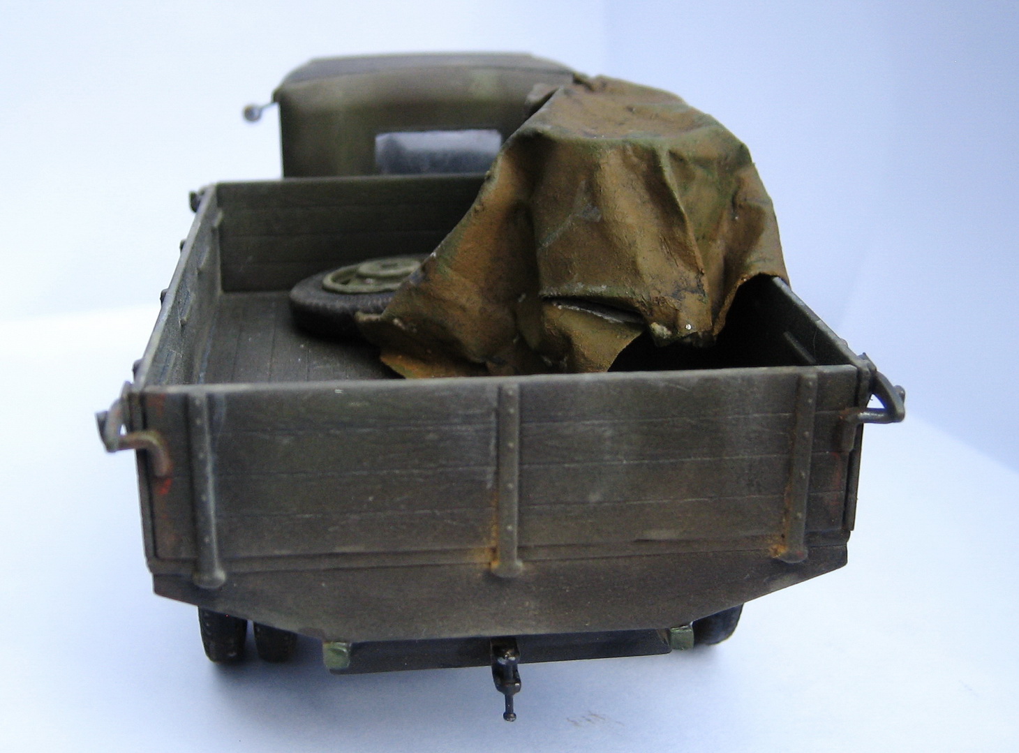 В целом грузовичок понравился! Из мелких недочетов - брезент, действительно по форме висит как из жести, на капоте очень резкий переход от темного цвета к высветлению, смотрится неестественно, как будто краской мазнули, ну и колеса как то фрагментально загрязнены...