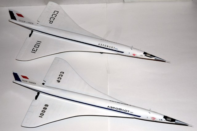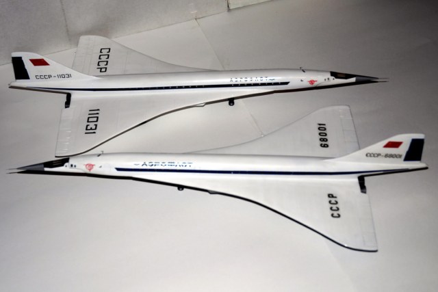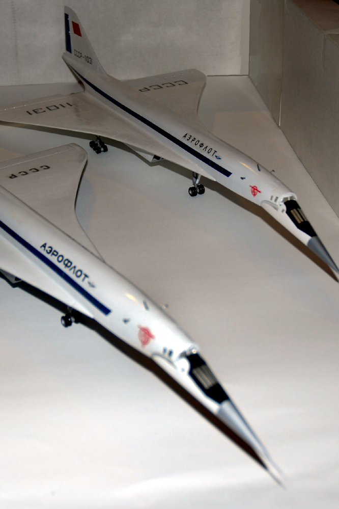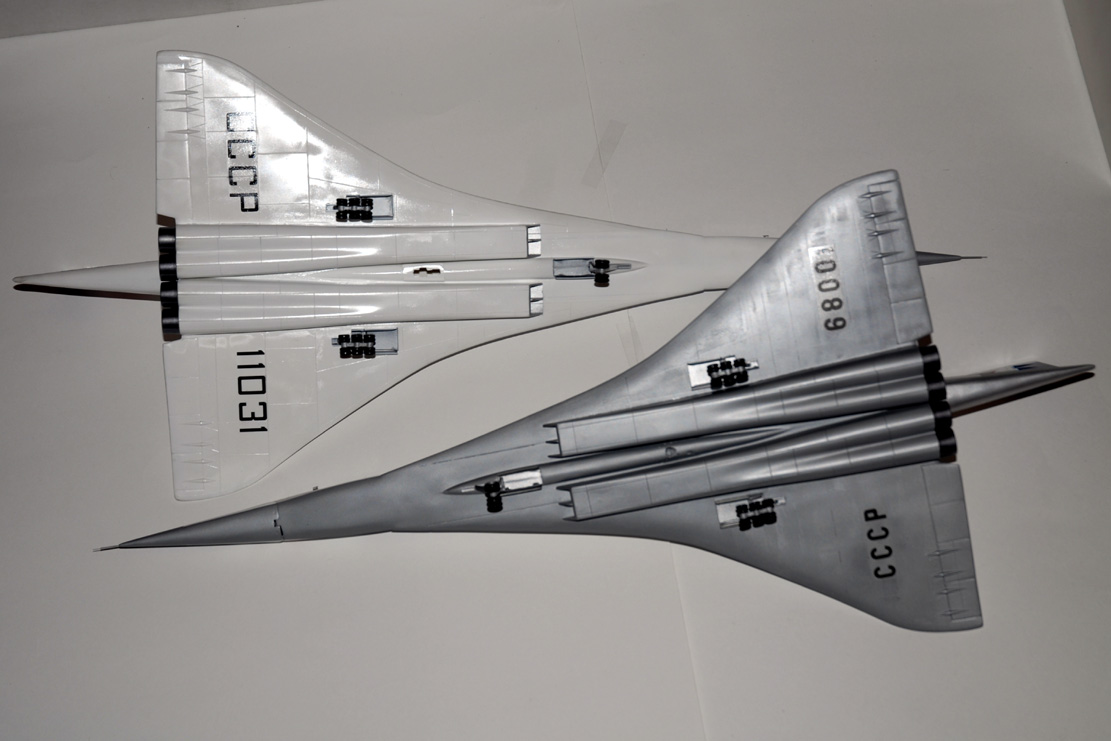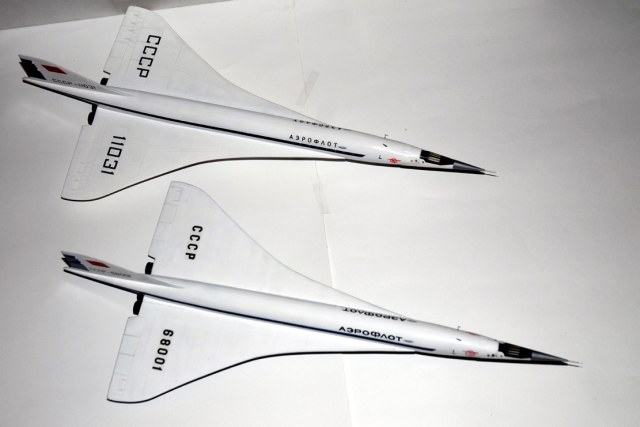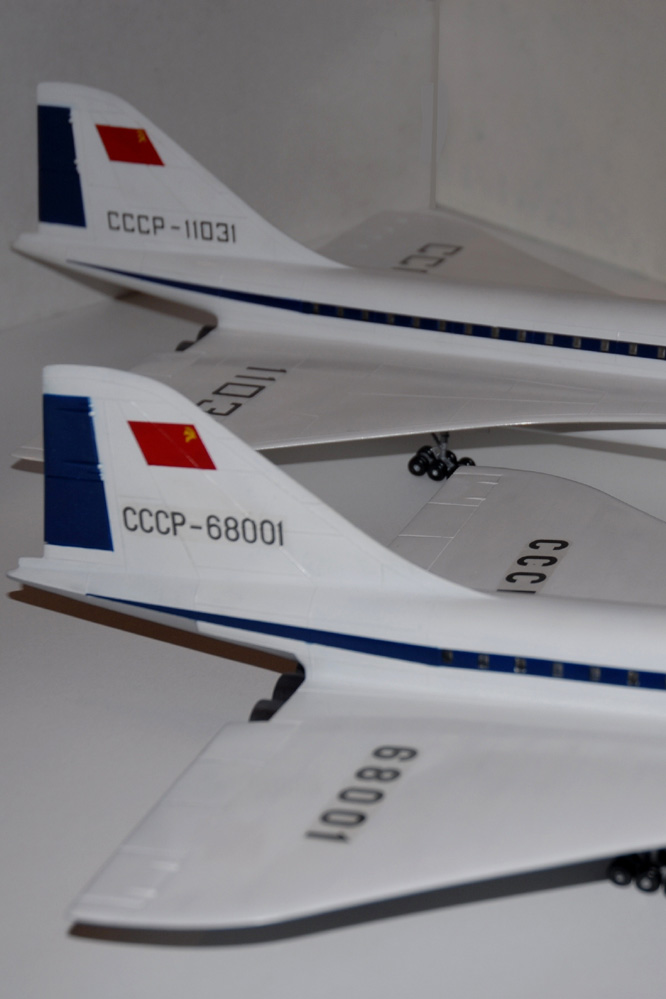 Оба красавцы! Вспомнилось славное советское детство. Одно вернее два замечания. Борт СССР-68001 никогда не имел надписи АЭРОФЛОТ-машина опытная и была в единственном экземпляре, окраска и регистрация не менялась до списания. . А серийный ТУ-144-это абсолютно другой самолет ничего общего с 68001 не имеюший-кроме аэродинамической схемы и названия. Но серийные имели регистрацию начинающуюся цифрами 77.. А так модели прекрасные конечно! Молодец!!