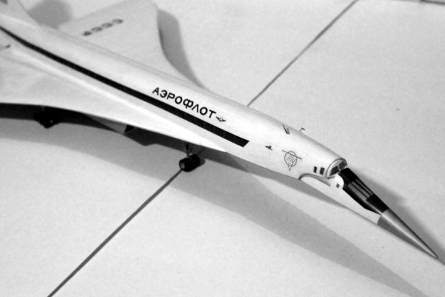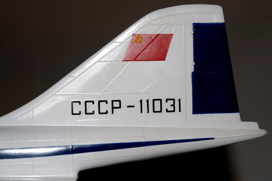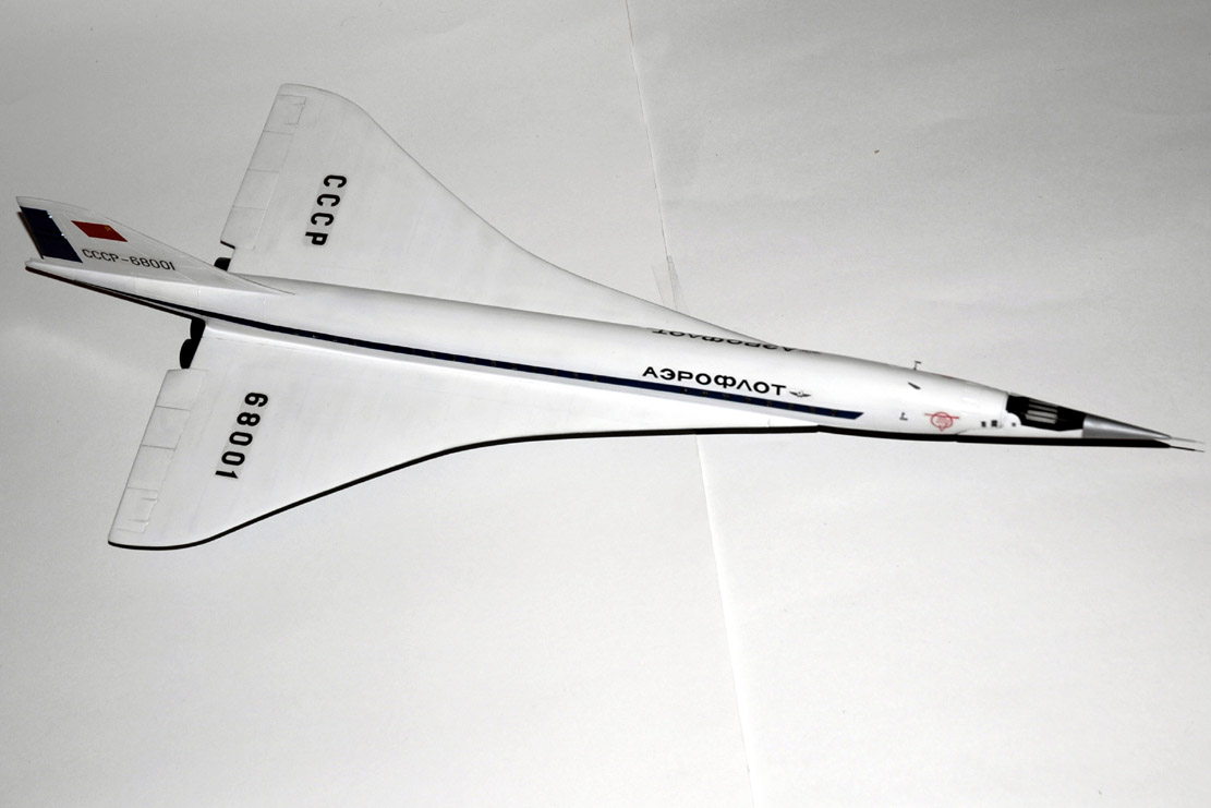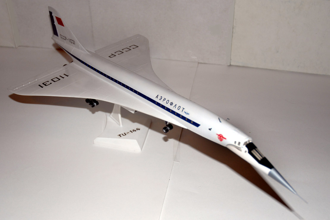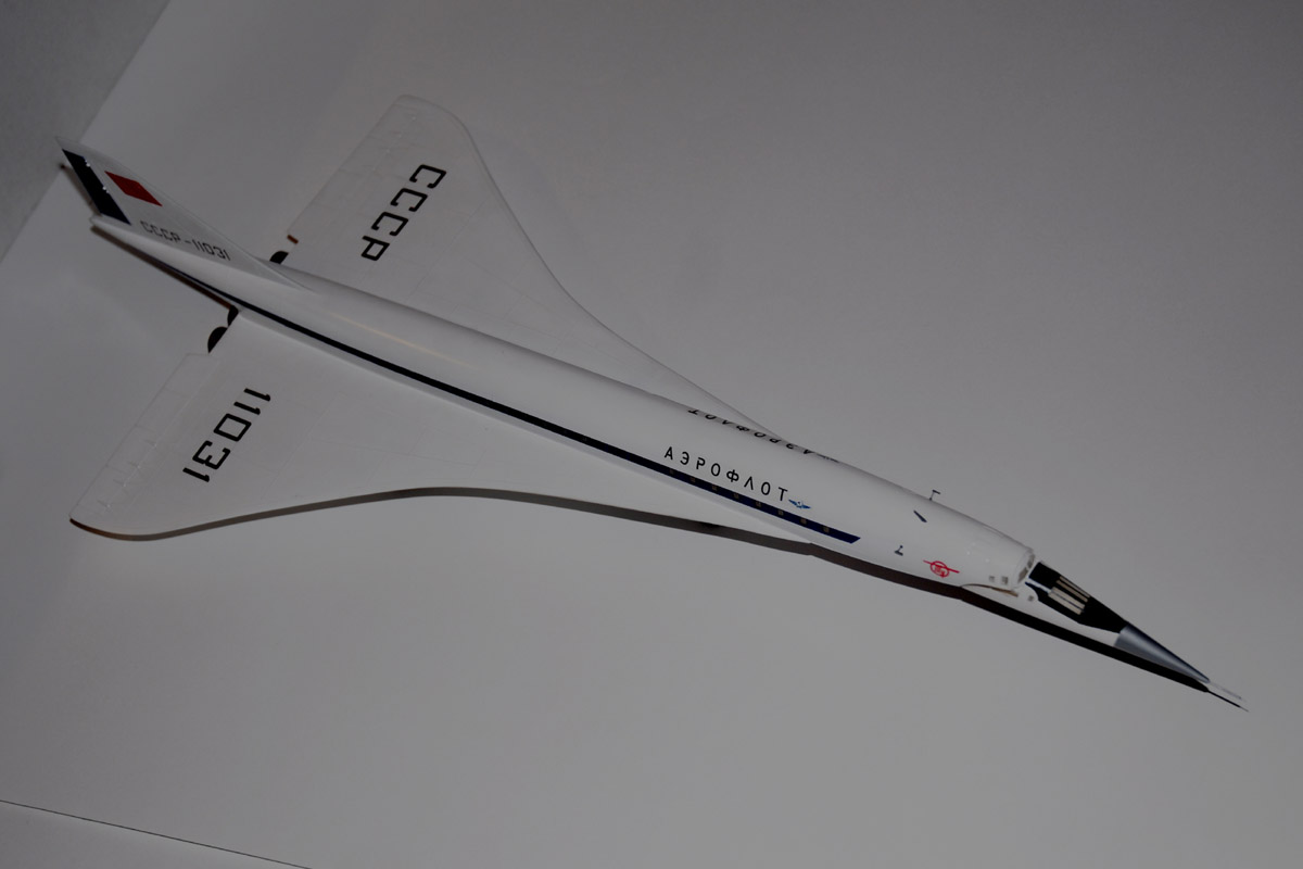 Старый добрый Пластикарт. У самого такой имеется, собран в начале 80-х. Сборка и окраска приличны, но с историчностью швах. И дело не только в желании заказчика на белый самолет. Пластикартовская модель - это 1-й прототип Ту-144 (т.н. "нулевка"