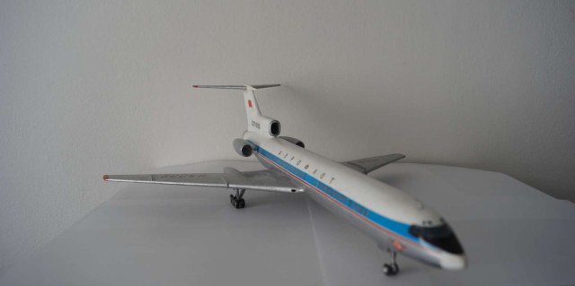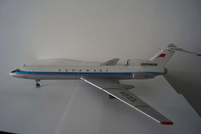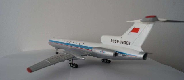 Это Ту-154 Б, посмотрите на хвост и движки. Там реверс со внутренними створками и дефлекторными решётками (которые можно было и выделить). Хотя, модель настолько не вписывается в серийную Бэшку, что рассмотреть там что-то сложно))