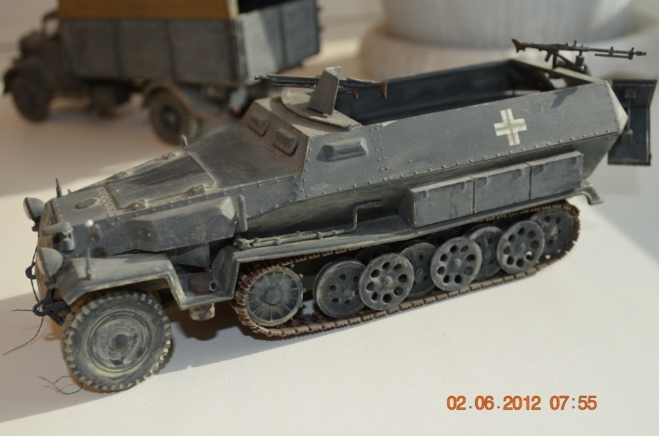 Почти собранный, от старости кое-что уже отломилось. Собирал из коробки, хотел движок вставить, не вышло, зато потренировался с фарами! остается поменять декали-уже старые, клеил давно, и светодиод в левой фаре. спалил..заодно стекла сменю, да и цвет светодиода менять надо, не расчитал малость.