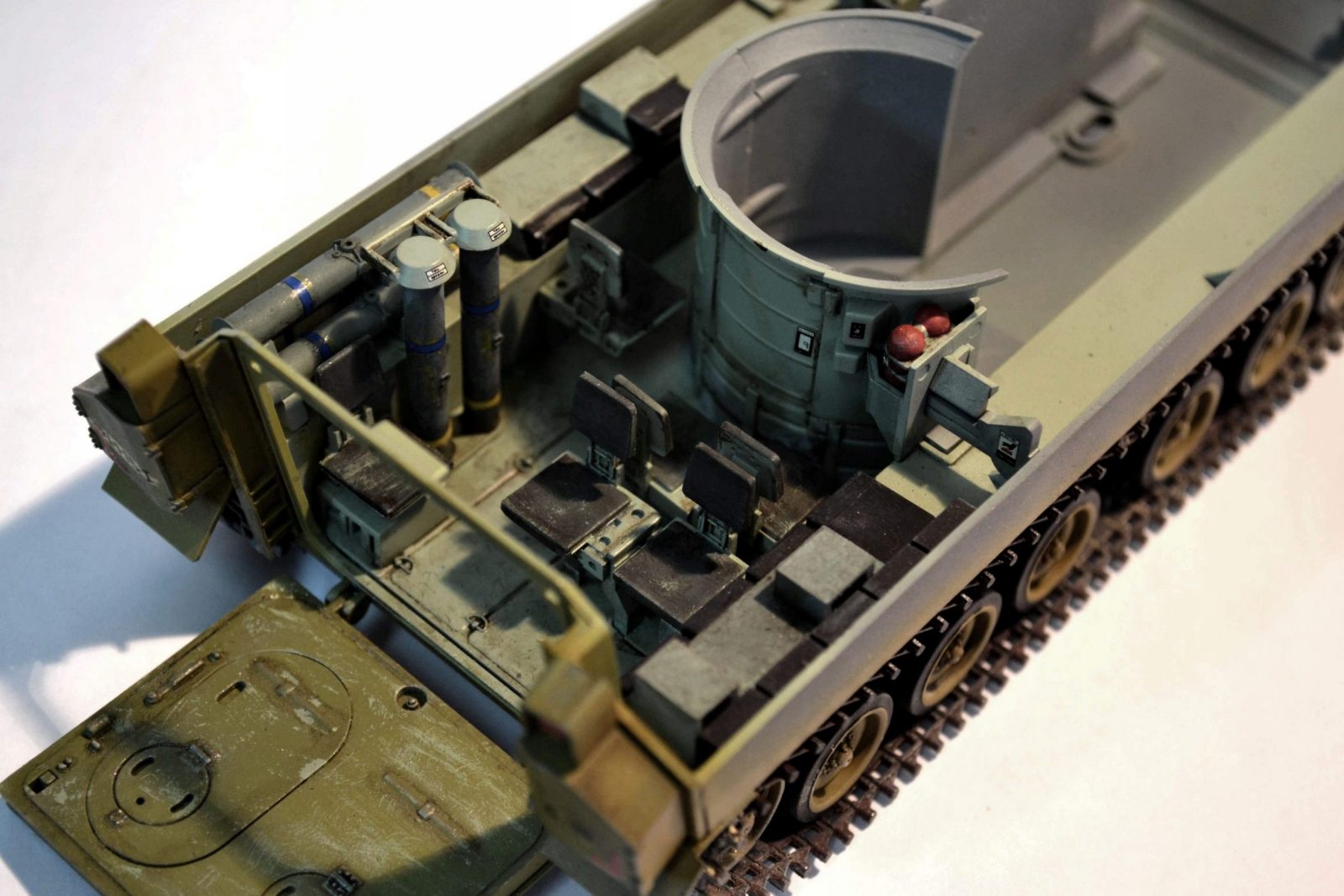 Модель красивая. Матчасть не знаю, изучал фото с интересом. Подумал: "а чем подымалась "дверь" в десантный отсек, а был ли уплотнитель на люке мехвода, в каких войсках СШП использовали данную цветовую схему?". Просто интересно, в современке не разбираюсь).