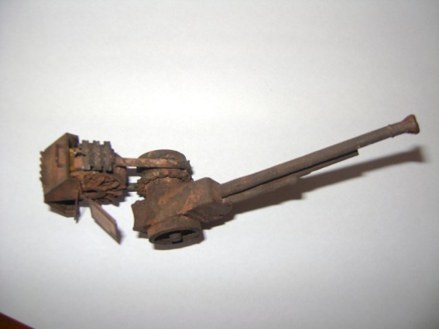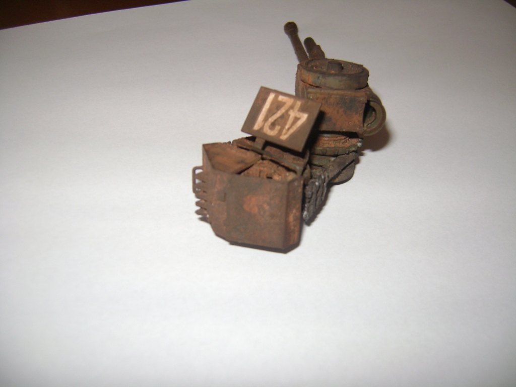 Доброго времени суток каропчане. Собиралось всё это из остатков всяких деталей и литников (т.к. делать нечего, а оставшиеся детали выкидывать не хотелось). Основу всего составляет детали от Т-34, Валентаина и прочего "металолома". Здесь решил попробовать сделать ржавчину, обгоревший металл и окисление металла из пигментов MIG и смывки MIG (появился раздор для экспериментов). Декаль взята от пз4, который я ещё не доделал. Вот и получилось этакая "железка". Приятного просмотра, жду советов и критики.