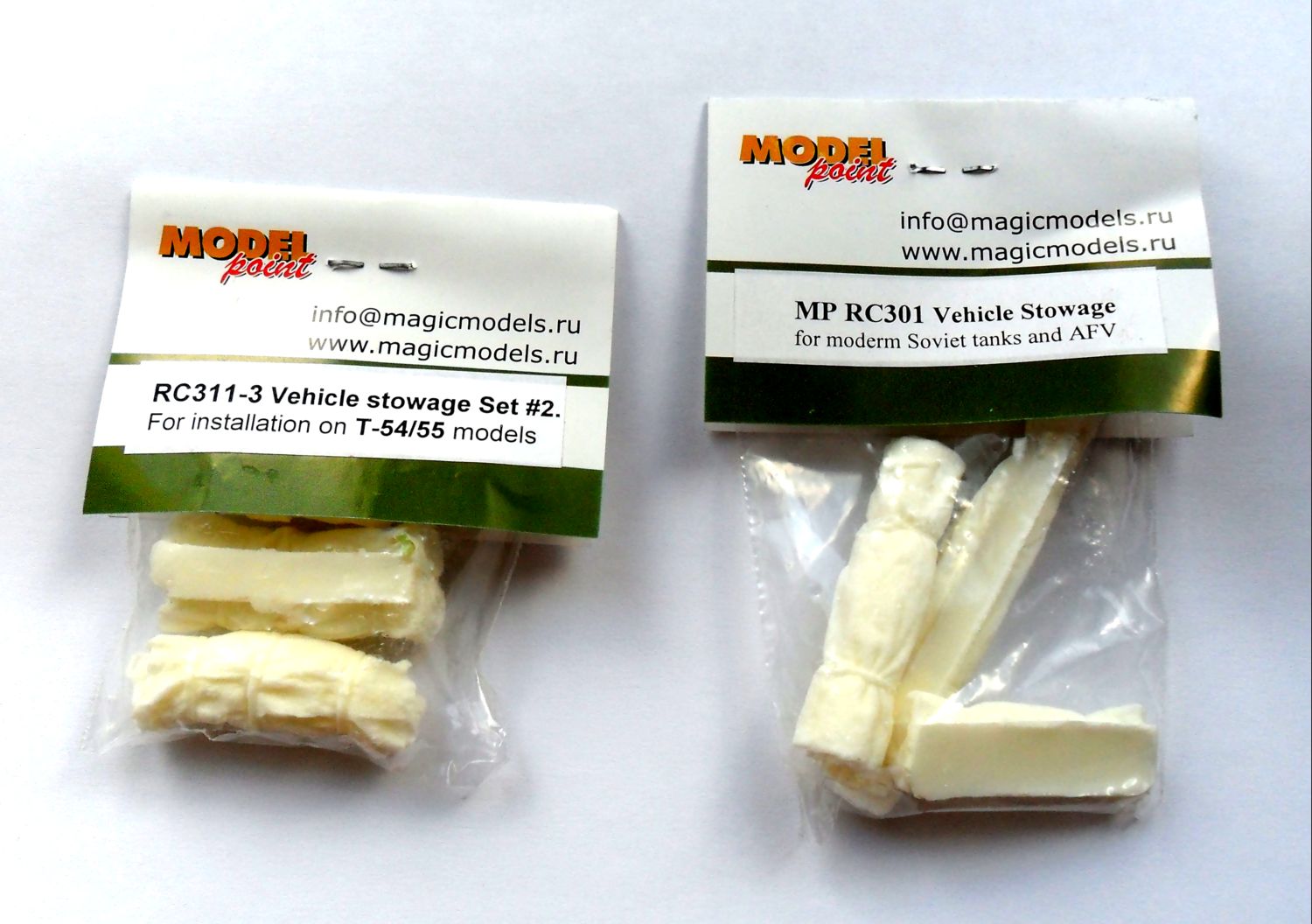 Измучившись с изготовлением брезента на Т-26-1, который все никак не хочет получаться, начал искать его у разных производителей. Ведь выпускают же всякие бочки, ящики и прочую мелочь. Нашел подобный афтермаркет у "Модел Пойнта" - это наборы брезента на советскую БТТ №№ MRC 311 и MRC 301. Первый позиционируется как брезент на Т-54/55, второй - как брезент на БТТ времен войны. На сайте изображение деталек было не ахти, так что набор заказал, можно сказать, вслепую.