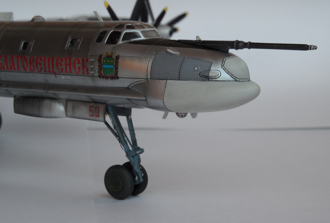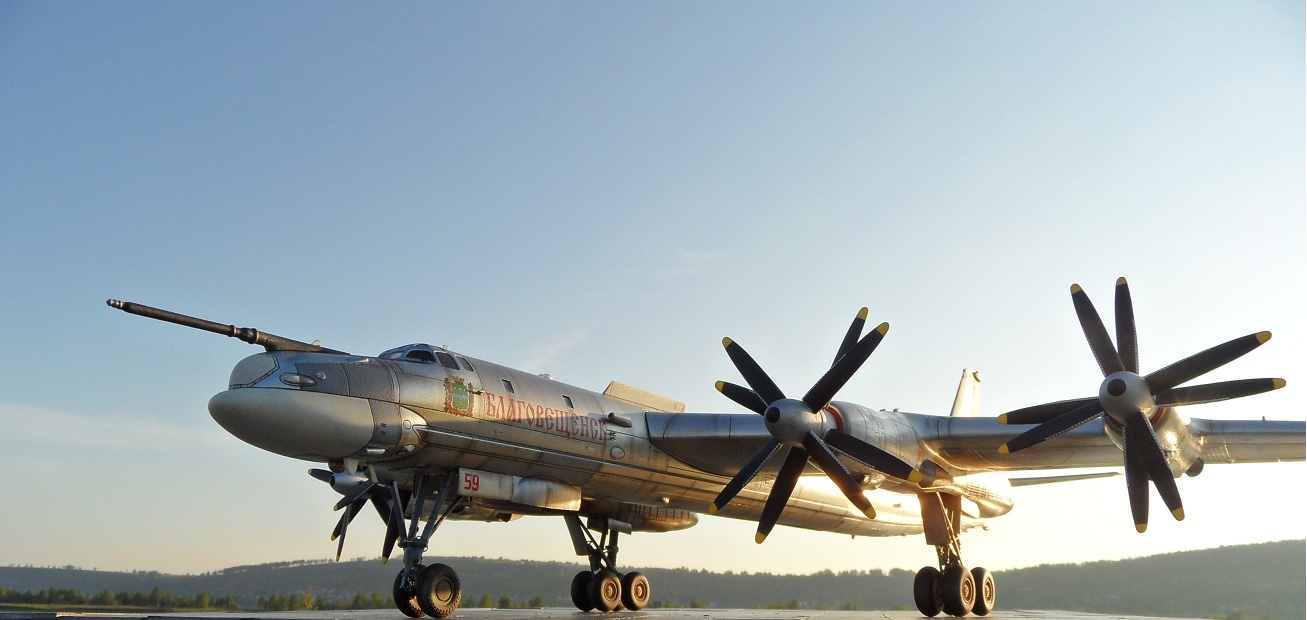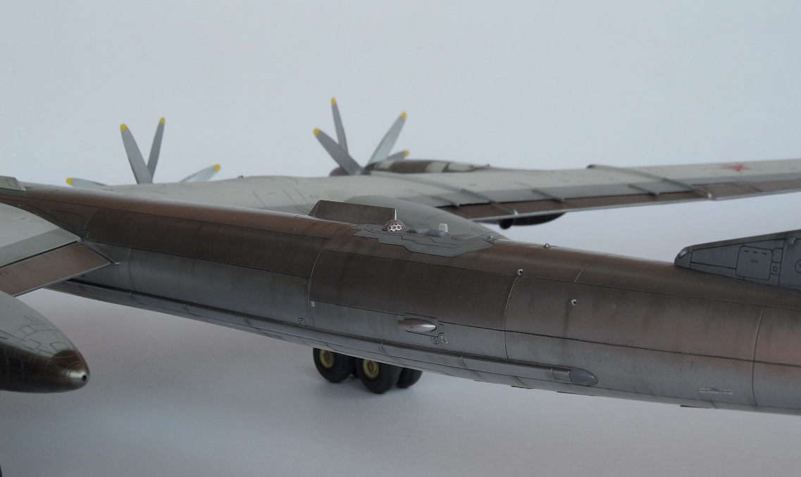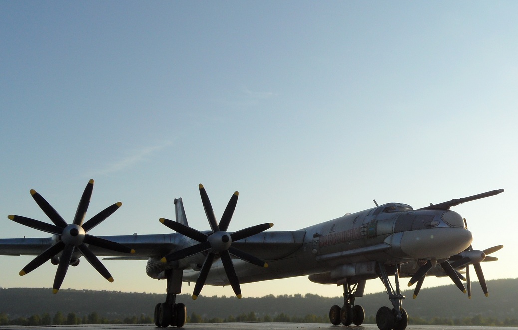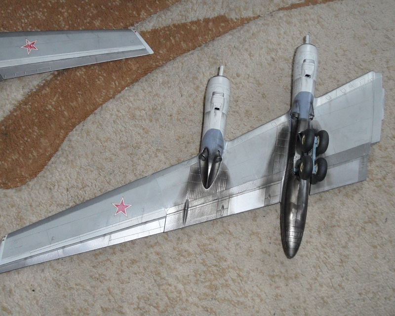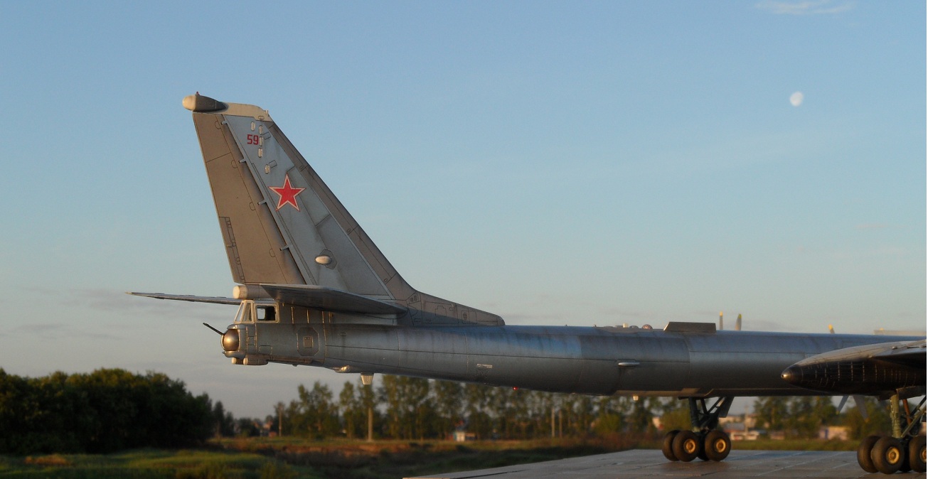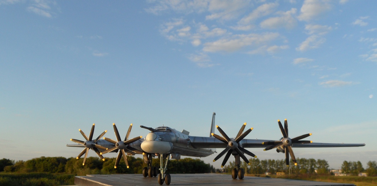 Всем привет! Представляю вам достаточно известную и популярную(судя по количеству моделей на сайтах) модель от Трумпа- ту 95. Про модель- все и так всем давно известно, потому ничего нового писать небуду. Когда появилась возможность приобрести этот наборчик незадорого из самого Китая- привез знакомый), то я нераздумывая согласился, тк мой первый ту 95 мягко говоря неахти. Постройка была начата еще в январе, и продолжалась с перерывами на другие менее крупные машины. И вот наконец я его добил, честно- устал, особенно вымотала стыковка двигателей с крылом- расшивку резал раз 5( тк очень много шкурения и шпаклевания)- а она там очень мудреная). Вообще расшивка почти отсутствовала на всех 4 половинках двигателей, еле заметная - очень замылена, на крыльях такая же ерунда. Видать форма подизносилась. В остальном собирается на ура, из доработок - передняя стойка переделана, добавлена проводка на всех стойках, переделана штанга дозаправки, пушки из игл. Самое что меня огорчило- много доработок было по кабине, мне выслали экстерьер от Экстра Теч- травление на ту 95, человек использовал оттуда только интерьер а вся нутрянка осталась нетронутой. Кабина была доработана - но нечаянно удалил все фото промежуточной постройки, потому нихрена теперь непосмотриш, пять дней впустую). Также как мог доработал "бородавки"- ИК станции помех- которых у ту 95 две, одна на спине, а одна на морде внизу. Нить натягивать нестал, просто оторвется она рано или поздно).Окрашен в соответвие со схемой которую дает Аунтек Декалс- долго раздумывал над цветом крыльев- все же белый верх), но решил положится на компетентность создателей декали, фото этого борта сверху я ненашел, да что говорить фото этого самолета -именно сверху ,вообще редкость. Модель окрашена из баллончиков, 5 разными оттенками металлика. Деки от Аунтек. Решил сфотать его для сравнения размеров с М50, для тех кто думает что Ту 95 очень большой)).Ну все , приятного просмотра).