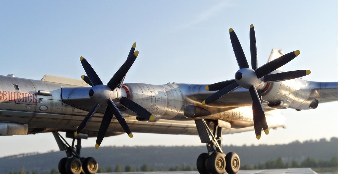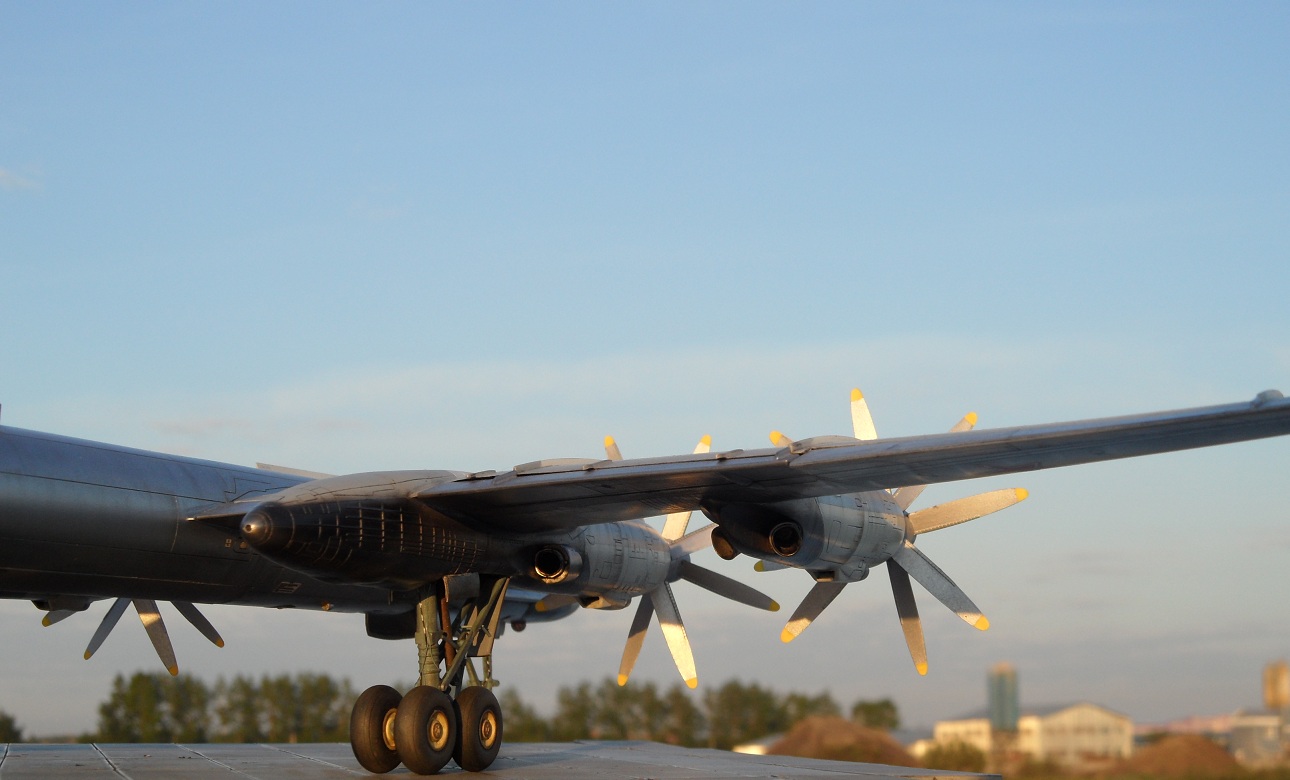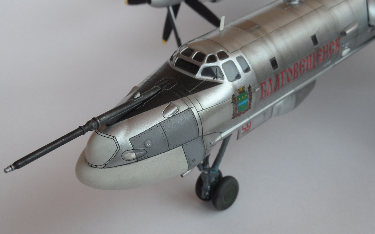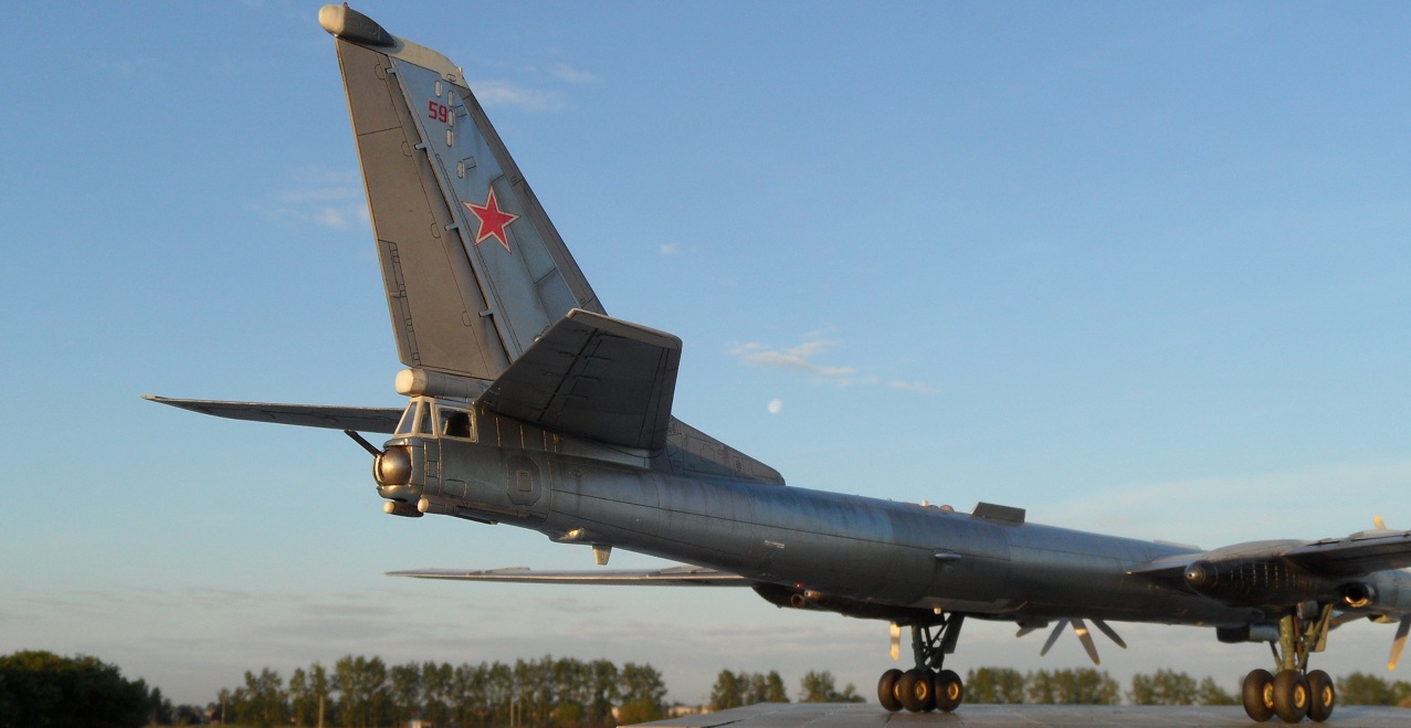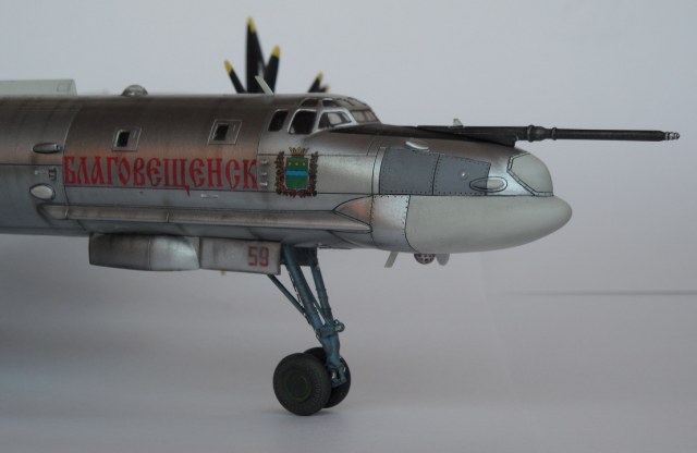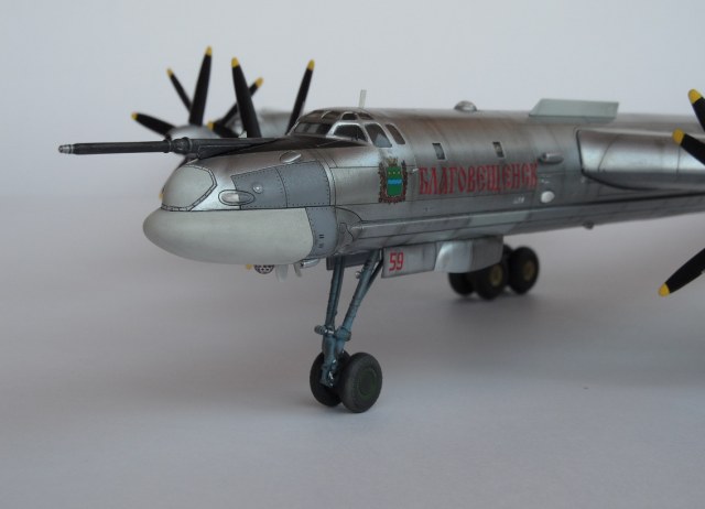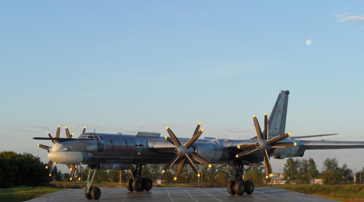 Всем привет! Представляю вам достаточно известную и популярную(судя по количеству моделей на сайтах) модель от Трумпа- ту 95. Про модель- все и так всем давно известно, потому ничего нового писать небуду. Когда появилась возможность приобрести этот наборчик незадорого из самого Китая- привез знакомый), то я нераздумывая согласился, тк мой первый ту 95 мягко говоря неахти. Постройка была начата еще в январе, и продолжалась с перерывами на другие менее крупные машины. И вот наконец я его добил, честно- устал, особенно вымотала стыковка двигателей с крылом- расшивку резал раз 5( тк очень много шкурения и шпаклевания)- а она там очень мудреная). Вообще расшивка почти отсутствовала на всех 4 половинках двигателей, еле заметная - очень замылена, на крыльях такая же ерунда. Видать форма подизносилась. В остальном собирается на ура, из доработок - передняя стойка переделана, добавлена проводка на всех стойках, переделана штанга дозаправки, пушки из игл. Самое что меня огорчило- много доработок было по кабине, мне выслали экстерьер от Экстра Теч- травление на ту 95, человек использовал оттуда только интерьер а вся нутрянка осталась нетронутой. Кабина была доработана - но нечаянно удалил все фото промежуточной постройки, потому нихрена теперь непосмотриш, пять дней впустую). Также как мог доработал "бородавки"- ИК станции помех- которых у ту 95 две, одна на спине, а одна на морде внизу. Нить натягивать нестал, просто оторвется она рано или поздно).Окрашен в соответвие со схемой которую дает Аунтек Декалс- долго раздумывал над цветом крыльев- все же белый верх), но решил положится на компетентность создателей декали, фото этого борта сверху я ненашел, да что говорить фото этого самолета -именно сверху ,вообще редкость. Модель окрашена из баллончиков, 5 разными оттенками металлика. Деки от Аунтек. Решил сфотать его для сравнения размеров с М50, для тех кто думает что Ту 95 очень большой)).Ну все , приятного просмотра).