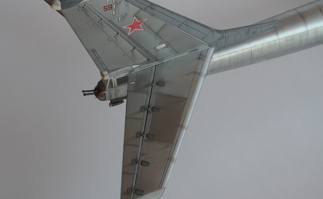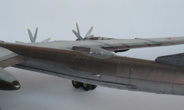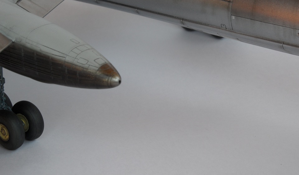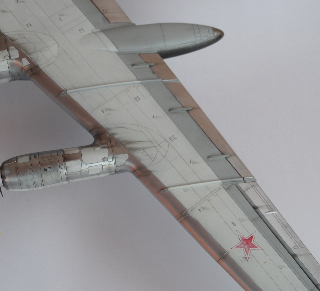 Окраска выполнена великолепно, эффекты эксплуатации оч понравились, кстати, белые зоны, а они именно белые - это противоатомное покрытие. Но модель, извините коллеги, посредственная - такие бросающиеся в глаза косяки производителя как непрофилированные лопасти, бронированные ПОС, гипертрофированные "штаны" сопел, выпускные заслонки маслорадиаторов и т.п., ничего не было доработано и исправлено хотя бы частично. С каких пор выпускают двигатели отдельно для левых и правых ВМГ. Какой смысл использовать фототравление не исправив все вышеперечисленное.
