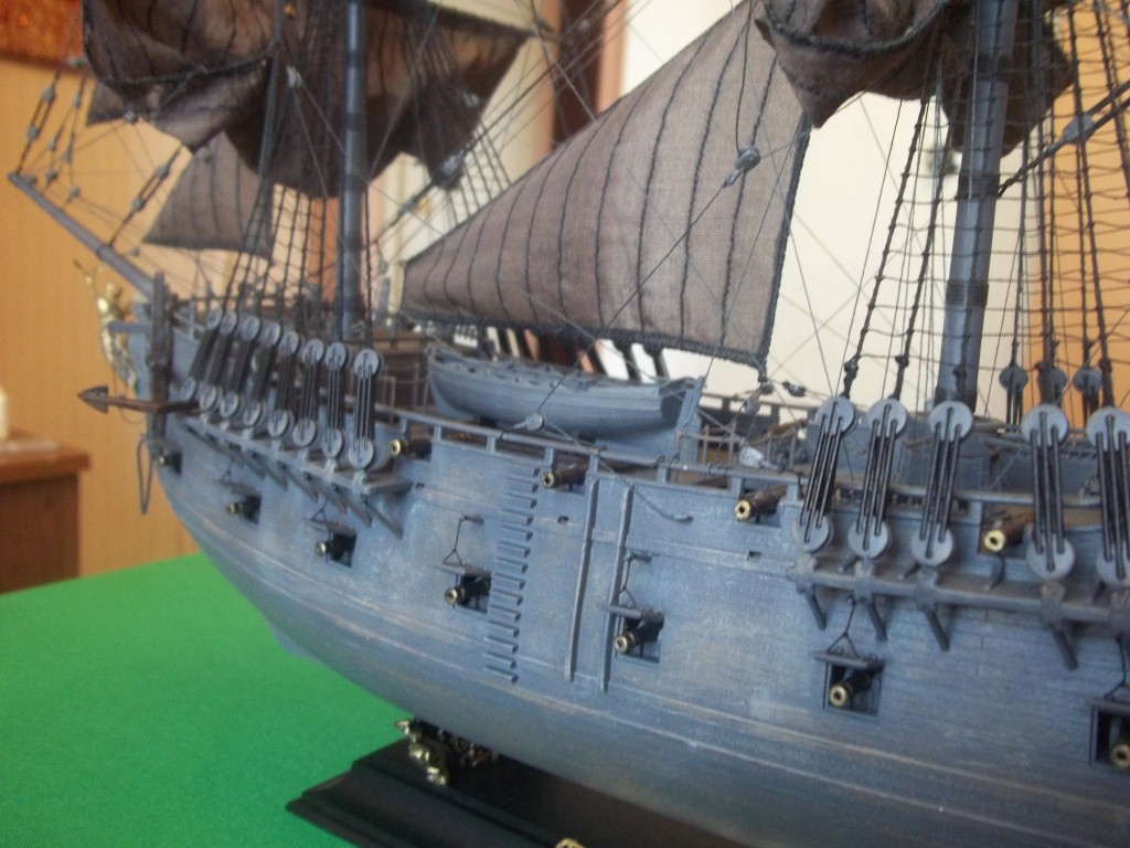 За ванты и паруса особые плюсы, но вот окрасочка немножко подводит. Текстура вполне позволяет сделать тонировочку. Сам недавно закончил с окраской корпуса, ну и пушечки бы привязать. Однозначно галерея.