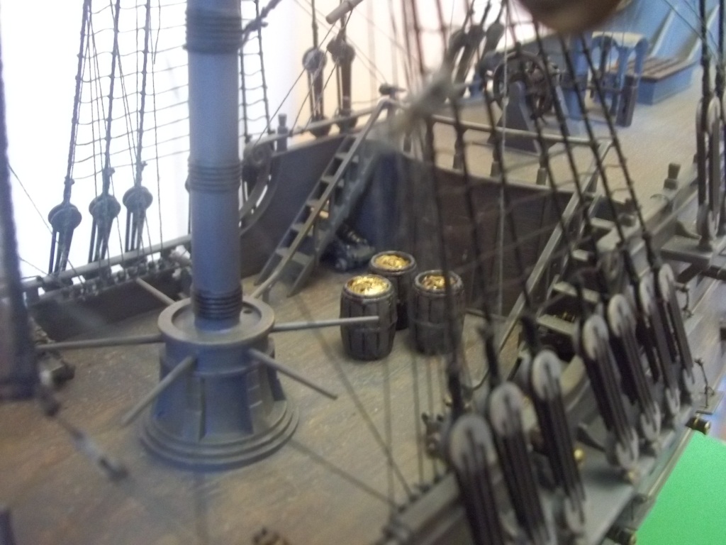 А причина - отсутствие смывки на бортах корпуса, за счет чего он смотрится одним большим куском серой пластмассы. Чего не скажешь о всем что выше - там изобилие разных вкусностей (вроде ювелирной вязки такелажа) производят завораживающее впечатление.