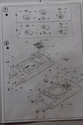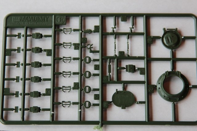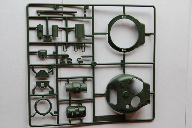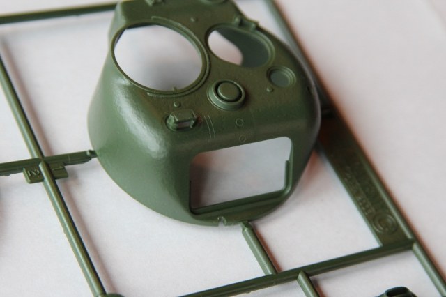 На мой взгляд, сама модель довольно редкая т.к. попытки найти её в российских магазина ни чем не увенчались. В итоге она была куплена на e-beyпричём совсем не дорого с доставкой вышло меньше 1000р. Открыв коробку, очень удивился, китайцы положили пакетик с кофе 3в1 и тюбик клея, причем, что за клей и для чего он я не знаю. Так же в коробке лежат 9 литников из зелёного пластика, корпус и ванна даются отдельно, всё очень приятного качества, толкатели расположены с внутренней стороны деталей, утяжин и облоя нет. Вообще качество этого набора очень понравилось, все детали хорошо отлиты, а на одном из литников имеется пробник с клёпками, болтами и буквами алфавита. Траки в наборе виниловые но на ощупь довольно мягкие , есть в наборе и трос верней есть кусок нити выполняющей функцию троса. но думается она сразу под замену, декаль в наборе на четыре варианта. Инструкция выполнена в виде книжки размером а4 в ней всё довольно подробно описано так что сборка не составит труда.
