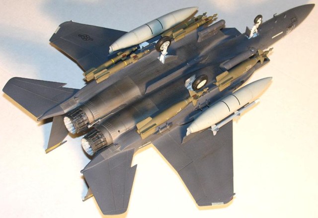 На сайте http://www.f-15estrikeeagle.com, выбрал один из типовых вариантов вооружения самолета - подкупила несимметричность подвески. Как и в модели от Hasegawa, в Ревеловском наборе, вооружение было представленно лишь четырьмя ракетами AIM-9 Sidewinder и подвесными контейнерами AN/AAQ-13 и AN/AAQ-14.