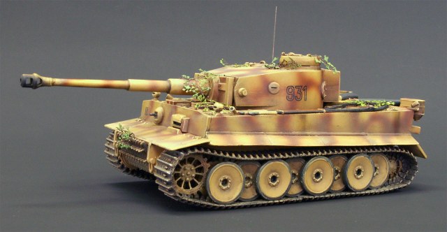 Успел все таки доделать тигра. Первоначально было куплено 3 коробки с данным китом. Один пошел для тренировок, а из двух других пришлось лепить один). Модель создавалась летом 2011 затем была заброшена на стадии покраски, достал и решил доделать. Собиралось из коробки, ствол точеный RB. Травленые веточки фирмы E.T. Окраска акрилом тамии, листья эмалями акан, все прочие эффекты масло.
