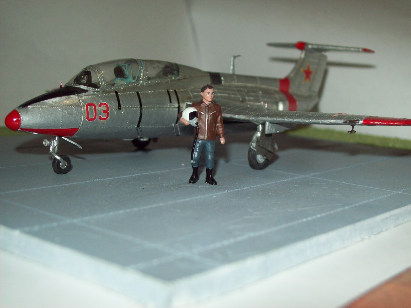 "Дельфин" - самая первая модель от KP, разработана примерно полвека назад. Исполнение соответственное. Сама модель оставила двойственное впечатление: сборка нормальная, но окраска какая-то небрежная. Да и звезды с желтой окантовкой странно выглядят. А летчик - он в очках?