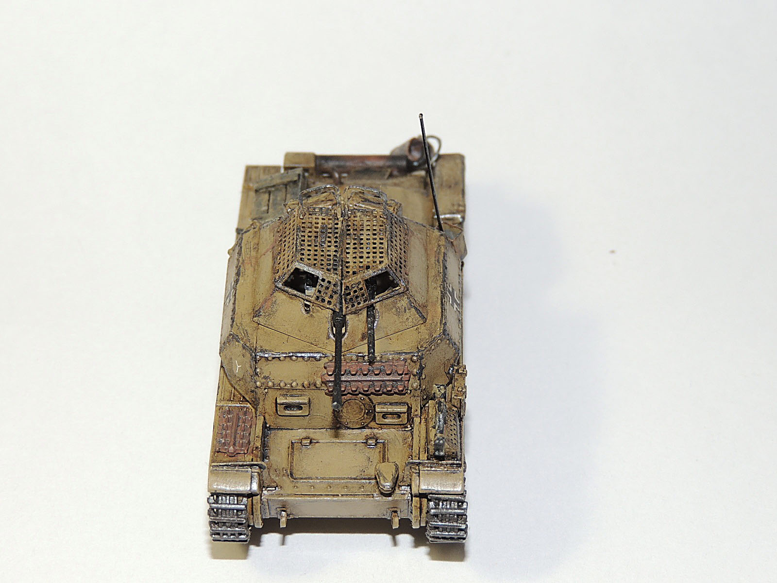 Любопытный танк. Попробуйте меньше смывки, я маслом решил больше не мыть, пигмент крупный и жирно выходит, лучше эмаль разводить.