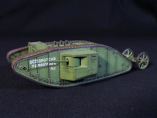 Модель представляет подобную "цистерну" с уже установленными орудийными спонсонами, до окраски ее в специфический пятицветный камуфляж.