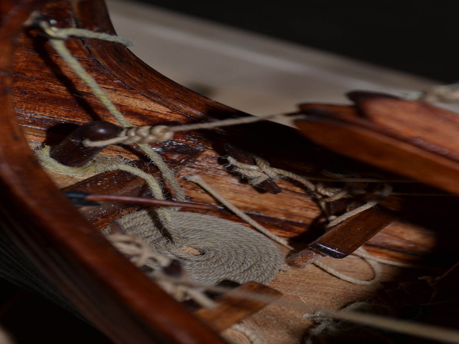 Не вижу строчек швов полотнищ паруса..... Финишная покраска модели (возможно это исправит новая фотосессия) напомнила мне мебельные стенка времен СССР - лак.... толстый слой БЛЕСТЯЩЕГО лака...