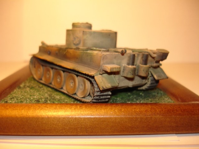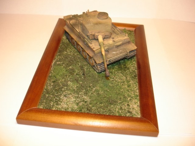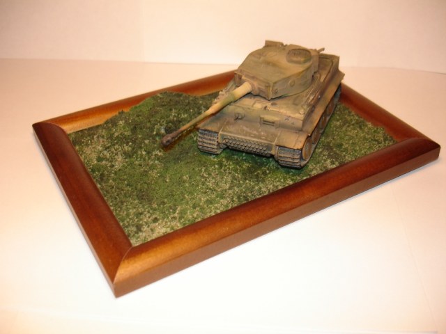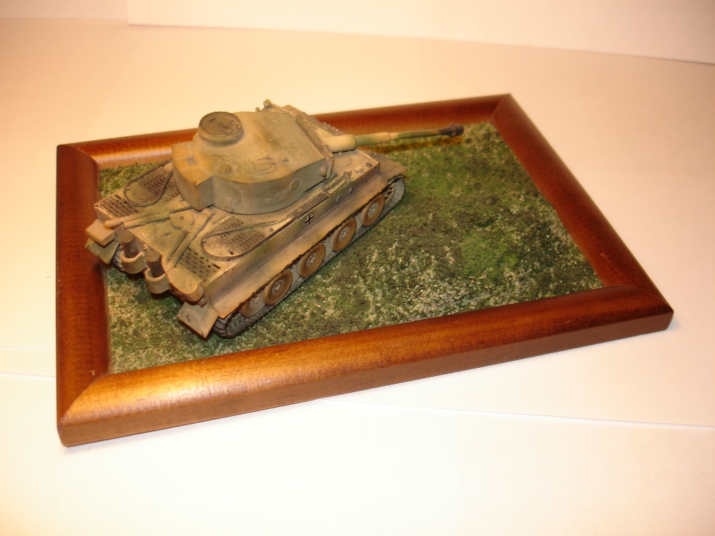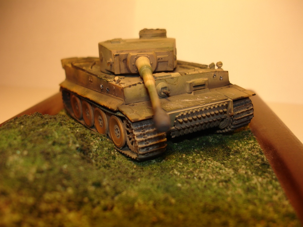 Всем доброго времени суток. На полке у меня уже давно стоял Тигр от Звезды в 72-ом масштабе, собранный как есть из коробки. После некоторых раздумий я решил попробовать сделать свою первую диораму. Чуть припылил чуть пригрязнил, добавил следы снарядов, пробоину и всё, Тигр готов.