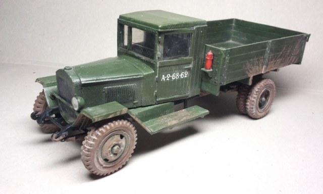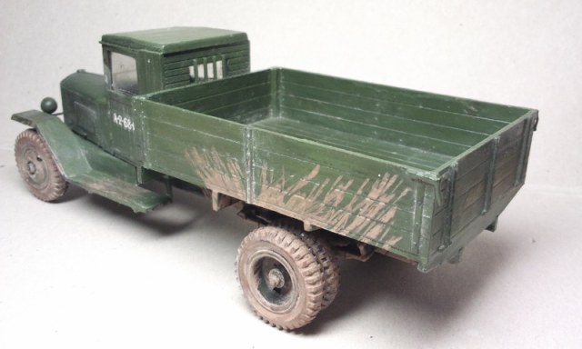 "Плюхи" грязи на кузове над задним мостом смотрятся неестественно. Огнетушитель крепился к кузову стяжкой, но она была не красная, а в цвет кузова. Но в целом моделью не смотрится.