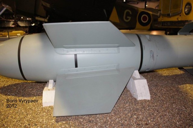 представлял собой бронебойную бомбу с короткими крыльями, расположенными по схеме «Х», что отразилось на обозначении бомбы – «X-1». В хвосте бомбы размещался стабилизатор с интерцепторами (иначе спойлеры – пластина, выставляемая поперёк потока), управляемыми электромагнитами. Система управления – радиокомандная «Киль/Страсбург» (FuG203 «Киль» - передатчик на борту бомбардировщика и FuG230 «Страсбург» - приёмник на борту бомбы). Проведённые испытания показали высокую точность системы. По крайней мере сами немцы утверждают, что в цель размером 5 на 5 метров попадало 50% бомб.