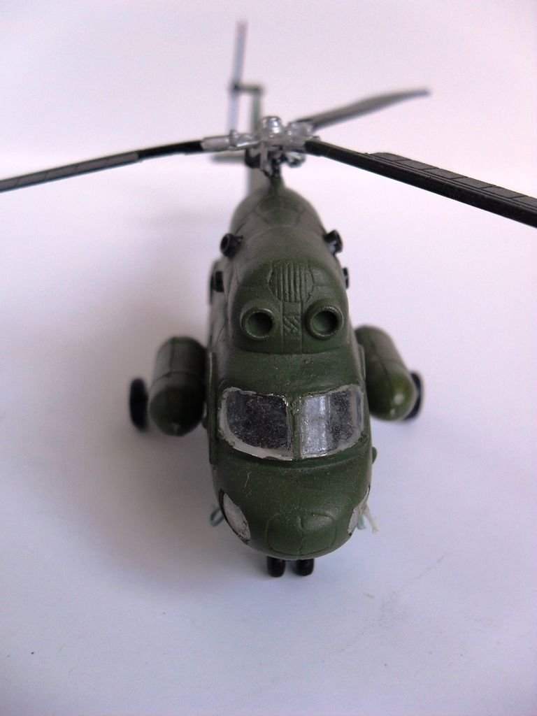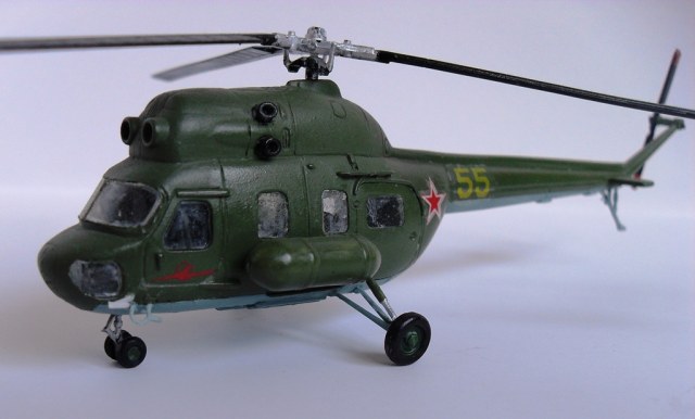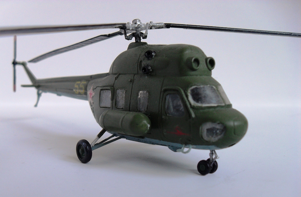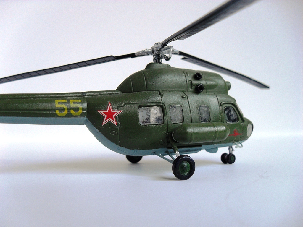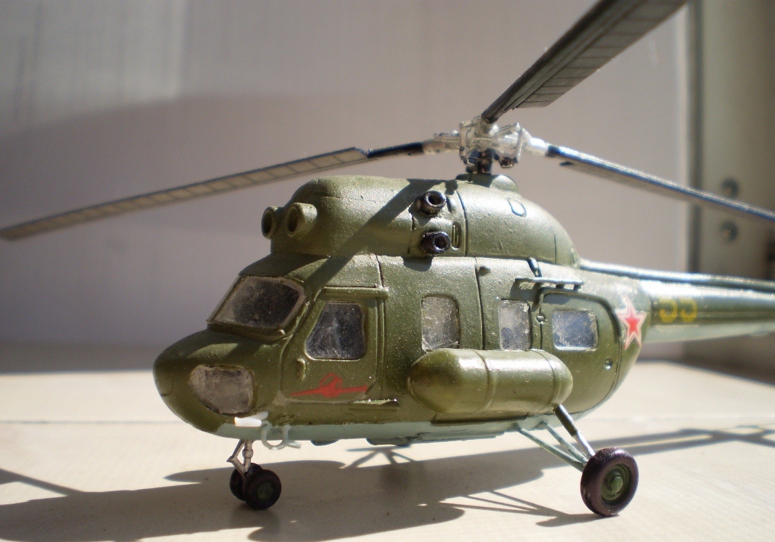 Несмотря ни на что,без Ми-2 линейка отечественных вертушек будет не полной,у самого такой же...,мелочи типа подкосов еще,как-то можно исправить,но лобовую часть,вместе с остеклением,да и мотогондолы,надо видимо полностью менять.Но почему лопасти черного цвета?