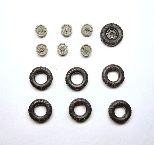 Шесть покрышек и дисков выполнены отдельными деталями.
