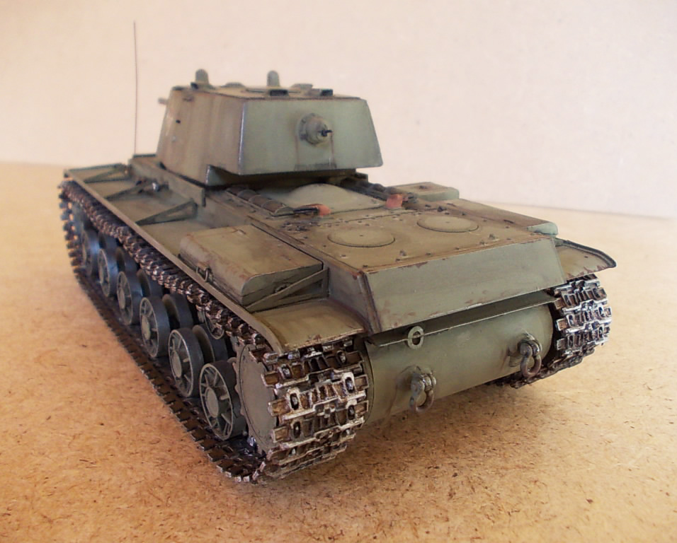 Боевой танк! Замечательно получился. Гуси надеты правильно, но бывало и наоборот, так что спор таков, если надеты правильно - то правильно, если нет - то это неправильно, но быть может. Задняя фара подкачала - толщина стенок или это крышка стекла? Пулемёт курсовой погнут, сетка мто без дырок что ли? А так очень радует глаз КВ.