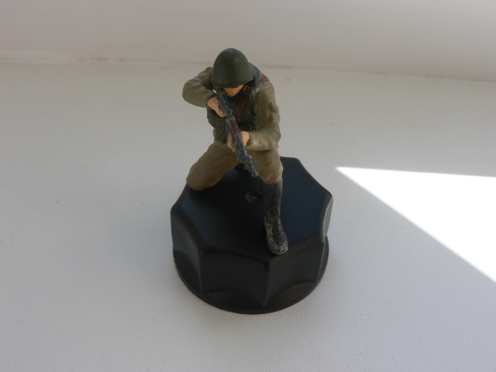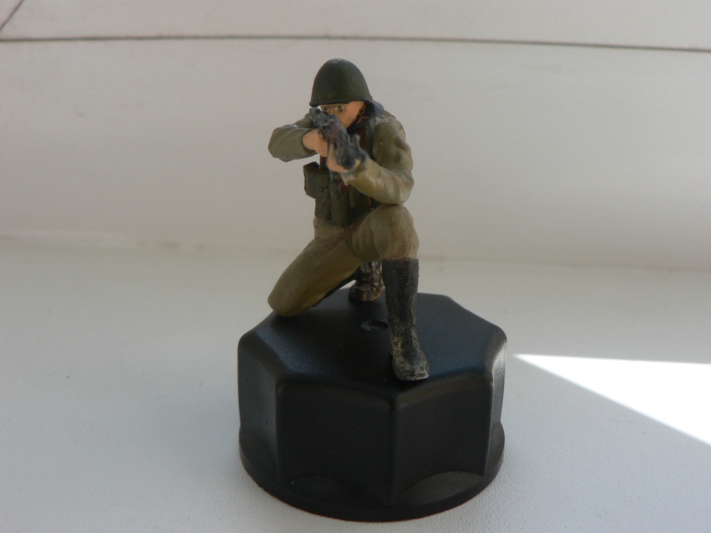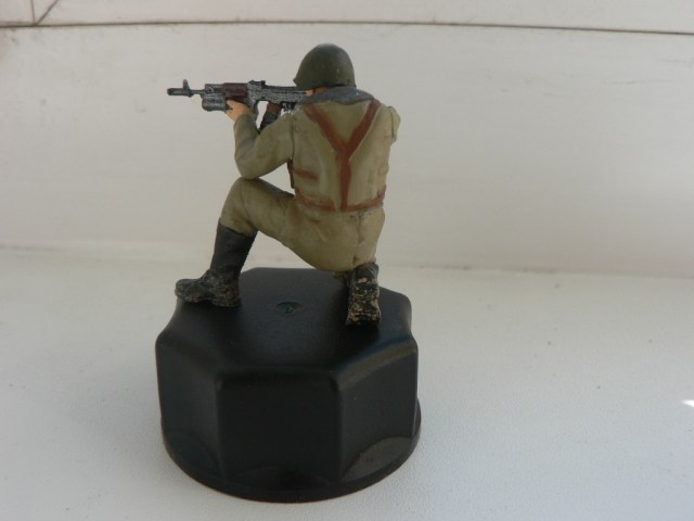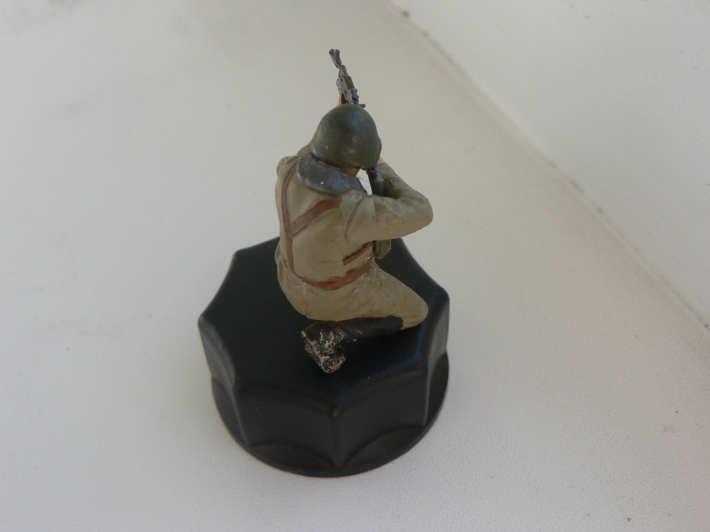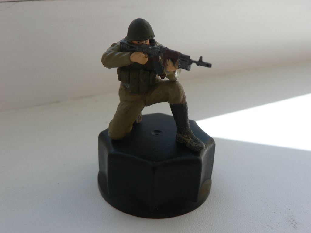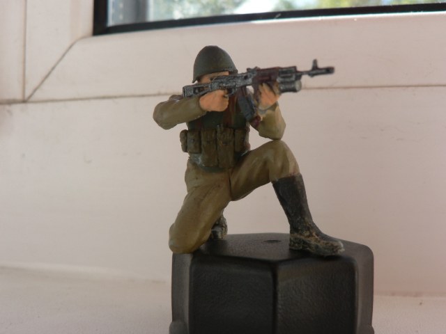 На будущее- бронежилет лучше красить не зеленым а хаки или брезентом,они очень быстро выгорали(на спине у бойца,кстати,ты почему-то забыл его покрасить вообще :-) ),для ремней я думаю тебе более тонкая кисточка нужна.