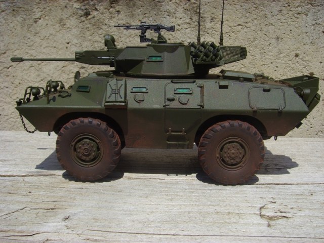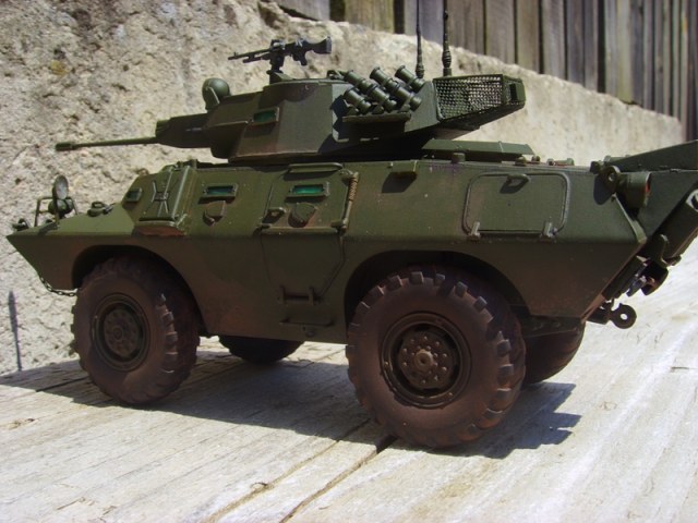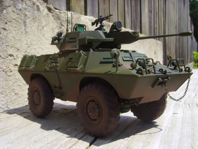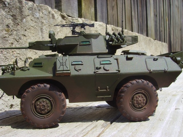 CABATEP, в прикреплённых Вами фотографиях это более ранняя модель, причём одна во Въетнаме, а вторая помоему в Чили ( и помоему это на базе V-100, но я могу ошибаться), а автор возможно пиндосовскую версию делал, а вот они практически без "партийной" принадлежности. Либо мог дать заводскую версию, а вот в какой стране будет он экслуатироваться те и дорисуют свою принадлежность.