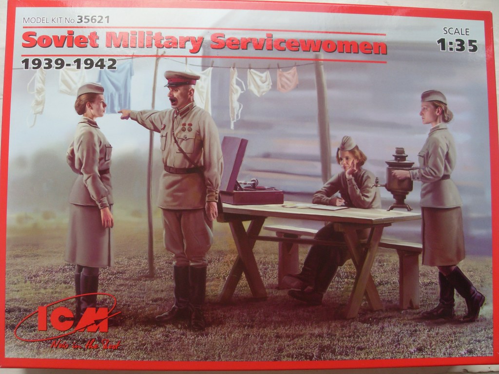 Весьма оригинальный набор от фирмы ICM, из которого можно собрать бытовую сценку из военных будней советских женщин-военнослужащих.